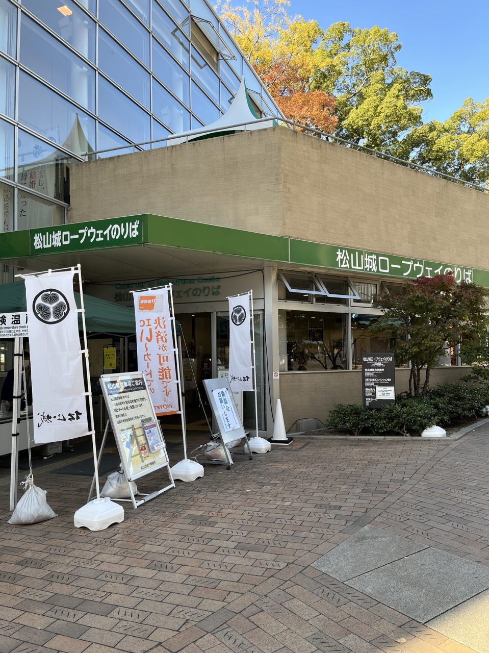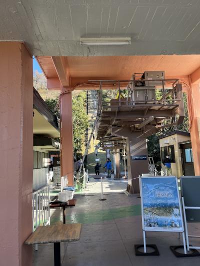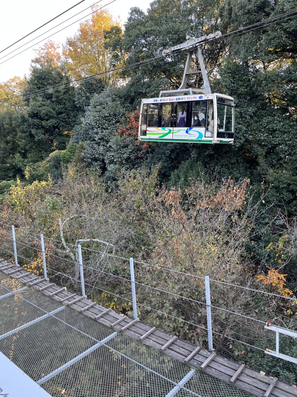 松山城見学のために、リフトに乗りました。ロープウェイもあり、どちらを選んでも同料金で往復520円と、わりとリーズナブルでした。