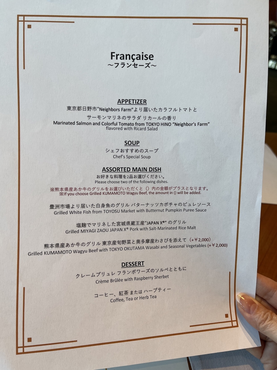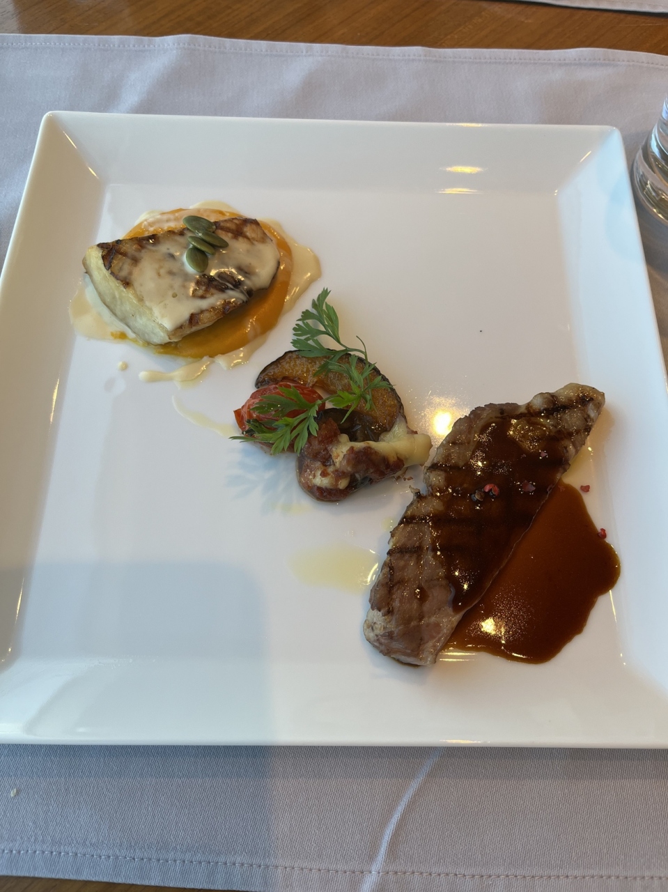 お料理は、前菜からデザートまでどれも、見た目味ともに完璧でした。夜の食事でも、来てみたいと思いました。- 旅行時期