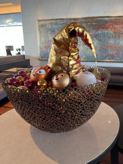 全国旅行支援を使って道後温泉で一泊しました。道後温泉駅から歩いて10分弱でした。広々としたロビーでちょっとびっくり!女性スタッフの袴姿がなんとも可愛いくて、なんとなくレトロな雰囲気を醸し出していました。夕食朝食ともに、美味しく頂きました。夕食は個室。朝食はブッフェスタイルを選びました。お風呂も、広々としていてゆったりと入浴できました。館内あちこちに、つばきの花がありました。