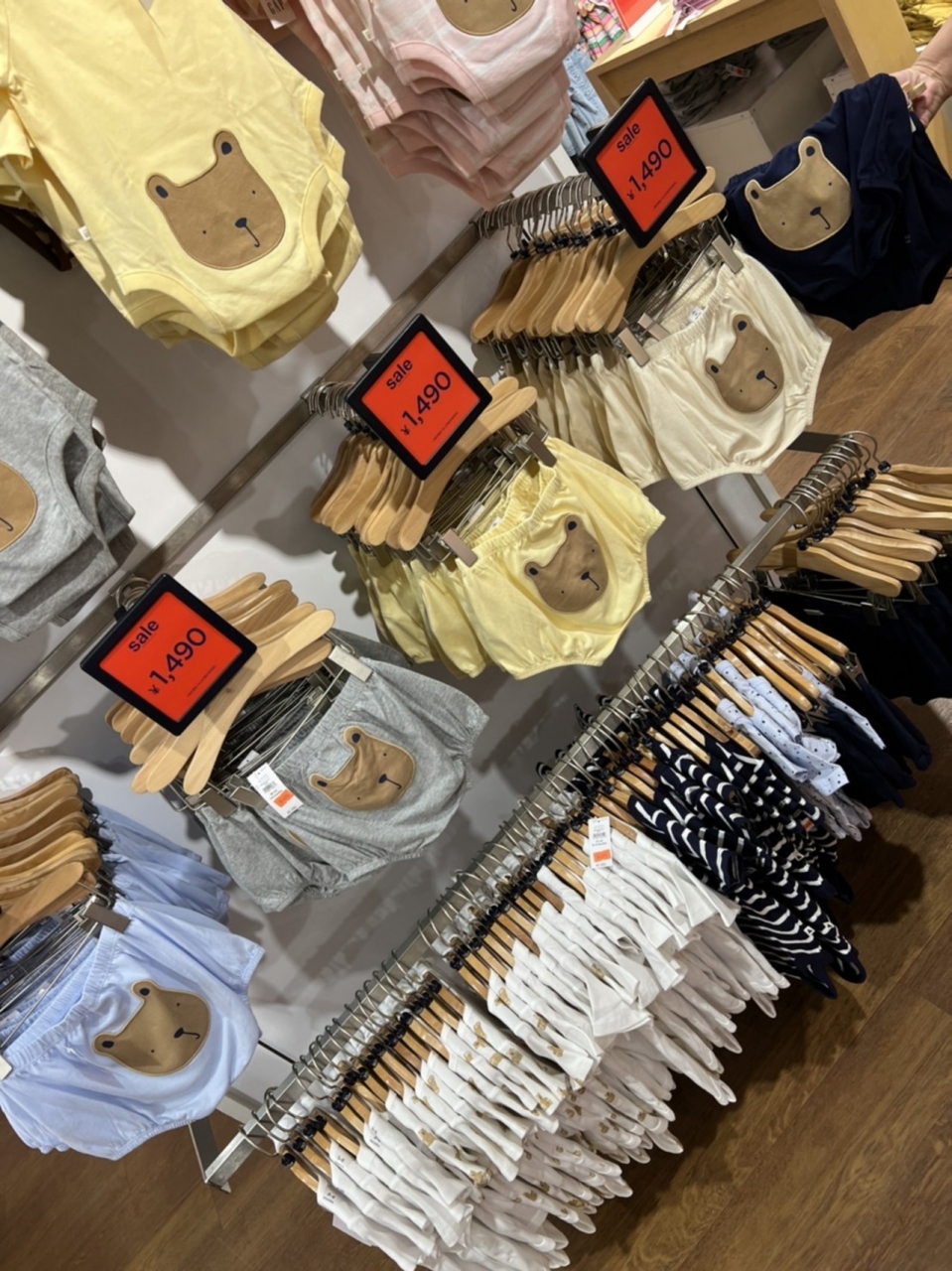 孫が生まれからと言うもの、ここに来るたびに、たくさん買ってしまいます。そこそこ可愛いデザインで、アウトレットだけあって、いつ来ても割引されているし、少し季節はずれのものは、かなりお安くなっているので、ついつい(笑)