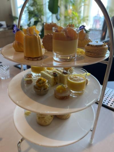 3段トレーに、スコーン、サンドウィッチ、マカロン、ムースみたいなものなど、綺麗に並べられていました。どれも、美味しくいただきました。- 旅行時期