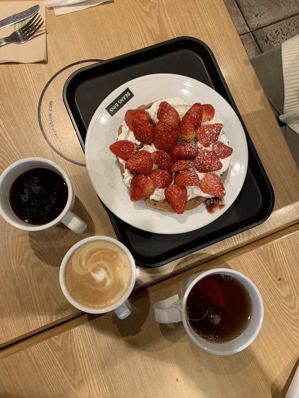 今回は、3人でシェアして頂きました。いちごがたくさんのっていて、クリームもしつこくなくて、本当に美味しいワッフルです。- 旅行時期