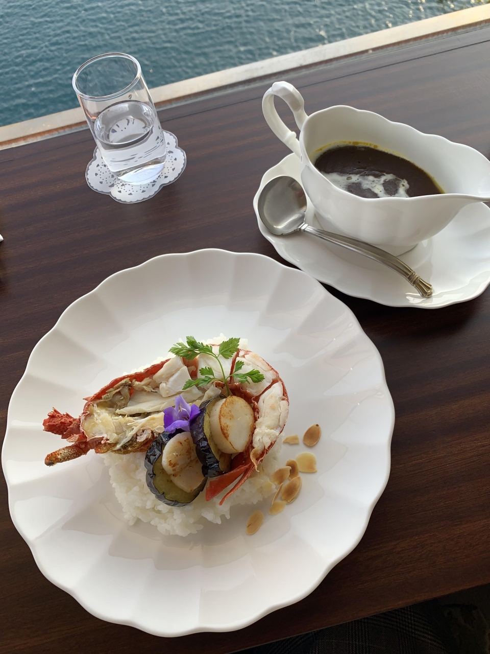 海を真っ正面に見ながらのランチタイムとなりました。駐車場から、下へ下へと降りて行くとお店の入り口にたどり着きます。店内には、カレーの香りがして食欲をそそります。伊勢海老ののったシーフードカレー、野菜カレー、パニーニなどを頂きました。どれも美味しかったです!海を真っ正面に見ながら、気持ちの良いランチタイムになりました!クレジットカードが使えます!