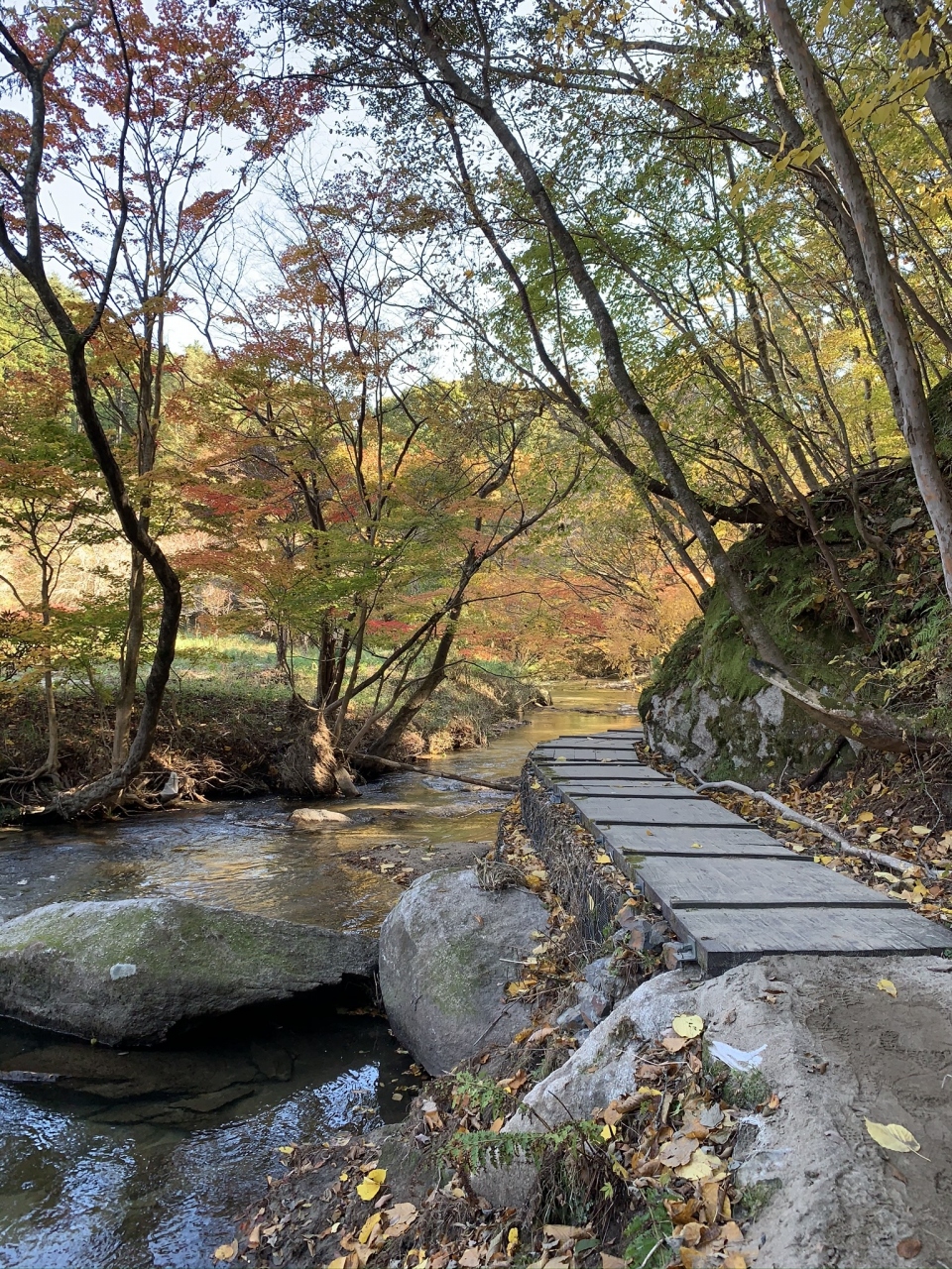 滝川の里で食事をした後に、散策しました。整備された遊歩道を歩きました。川べりなので、靴はちゃんとした靴の方が良いです。木漏れ日の中を歩きましたが、とても気持ち良かったです。所々、紅葉していました。滝の所まで行って引き返して来ました。