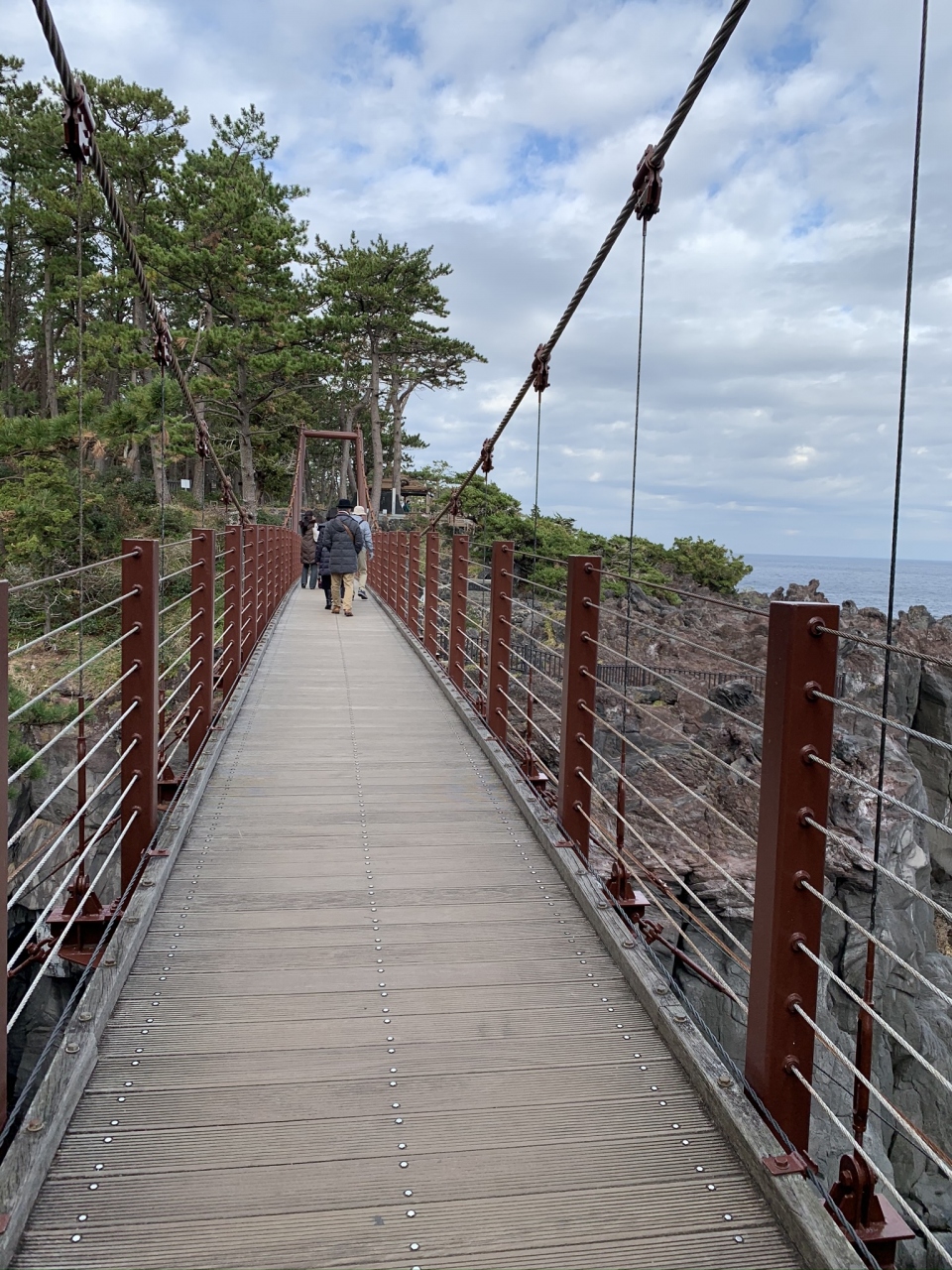81歳の母を連れて行きました。階段がたくさんあったら吊り橋までたどり着けないなあと思っていましたが、駐車場から比較的楽チンに吊り橋まで行けました。灯台に登ることもできるようでした。吊り橋を渡るのには、お金はかかりません。綺麗な冬の海を見渡すことができました。