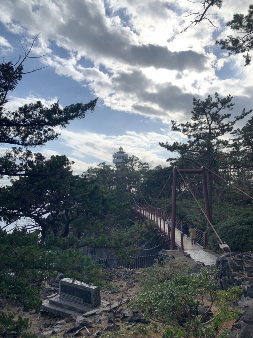 城ヶ崎海岸の吊り橋に行きました。吊り橋に行く手前に、この灯台がありました。高さが約25メートルほどで、あまり大きい灯台ではありません。無料で登れるようでした。急な階段に見えたので、チャレンジしませんでした(笑)