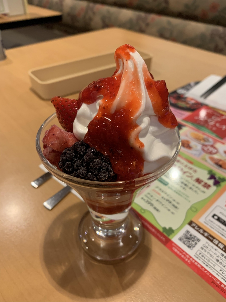 友人の遅めの晩ご飯に付き合うため、久しぶりに出かけました。駐車場も広いので、安心して停められます。時間が、21時ごろだったこともあり、あまり混んでいませんでした。ドリンクバーとスイーツを頂きました。ドリンクバーの種類は、そこそこありました。