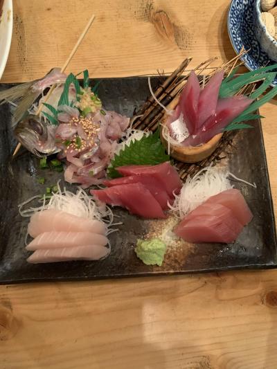 DHCホテルに泊まったのですが、晩ご飯を外で食べることにしました。予め予約してでかけました。駐車場は、近くのコインパーキングに停めました。新鮮な魚を頂きましたが、どれも美味しかったです。メニューがたくさんで、店員さんに聞かないと分からないような物もありました。クレジットカードが使えました。