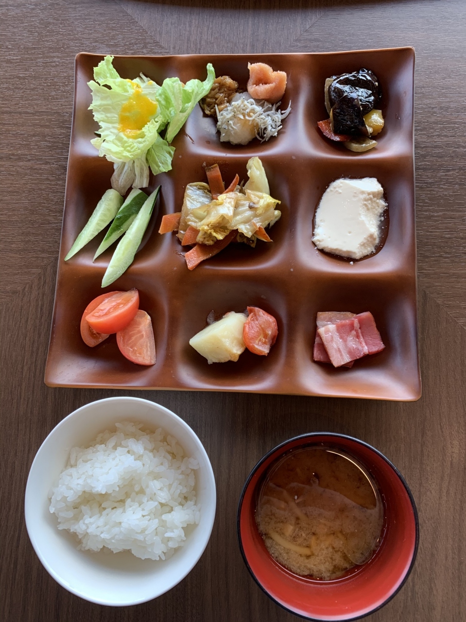 袋田の滝を観に行くために、一泊しました。朝ごはん付きの宿泊にしました。朝ごはんは、バイキングスタイルで和食、洋食と両方揃っていました。種類もあって美味しく頂きました。