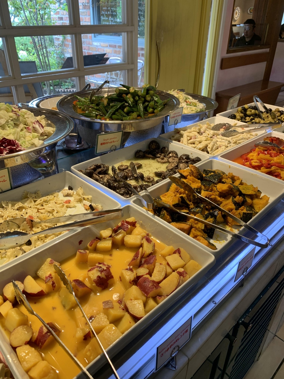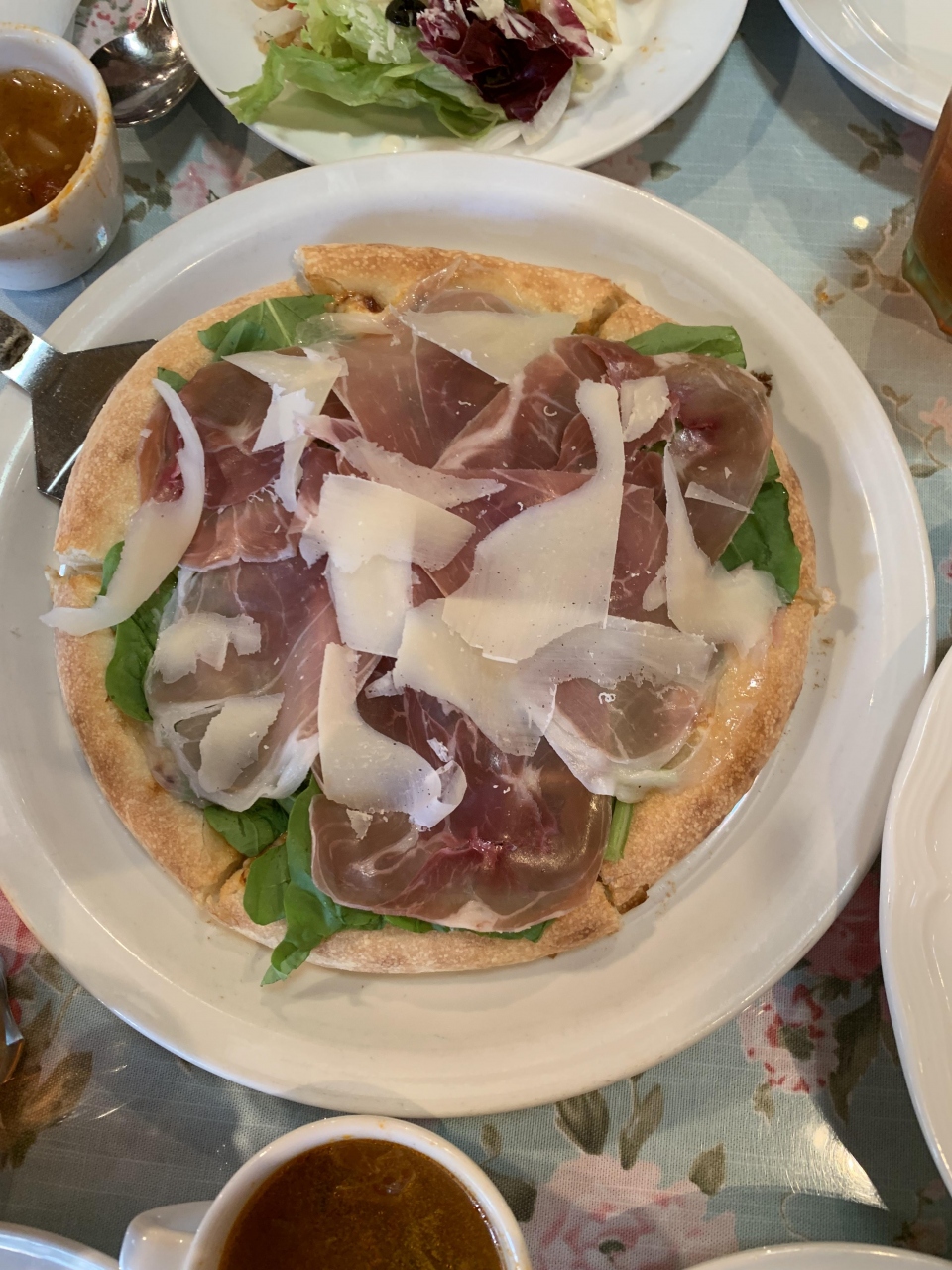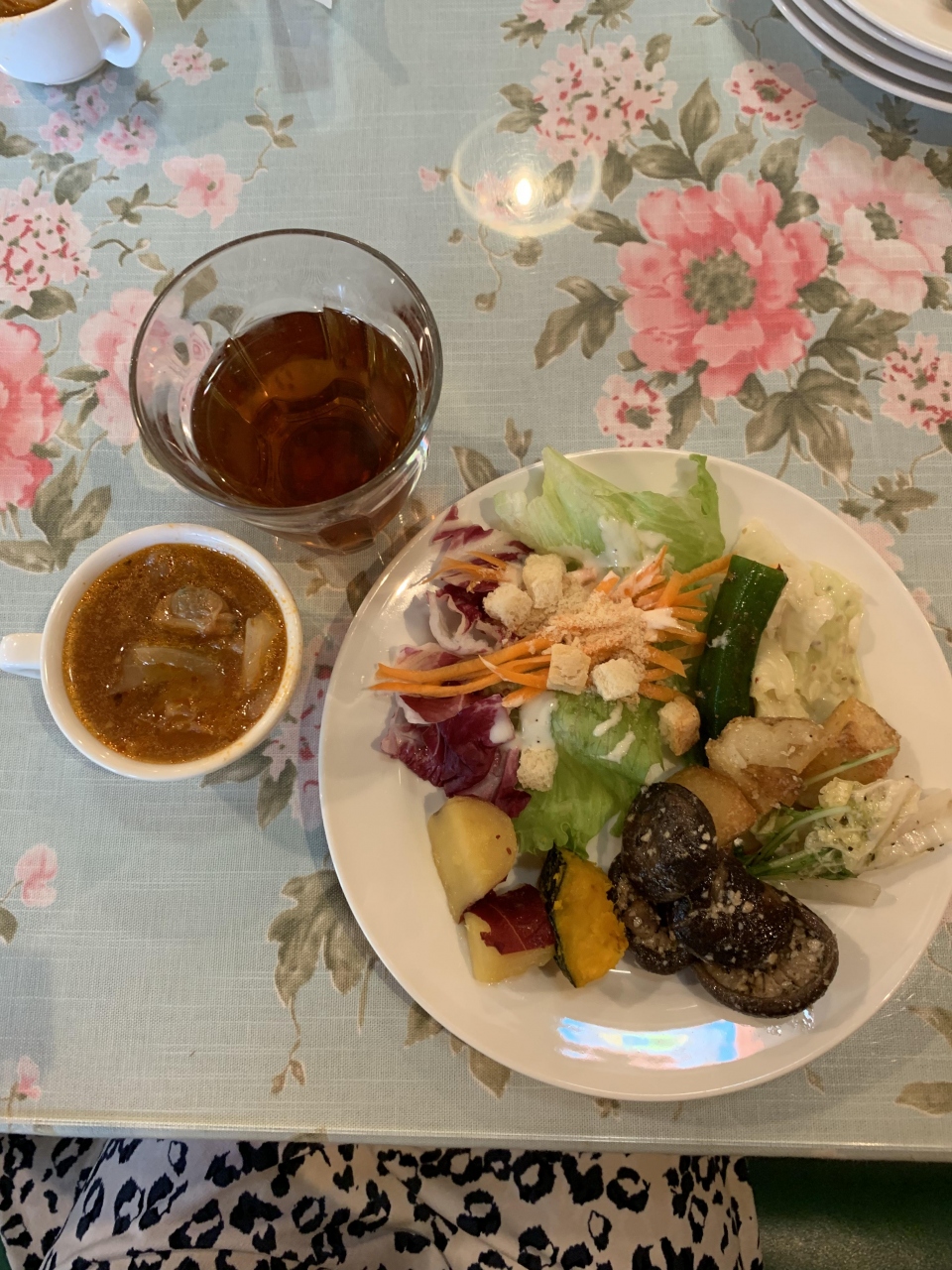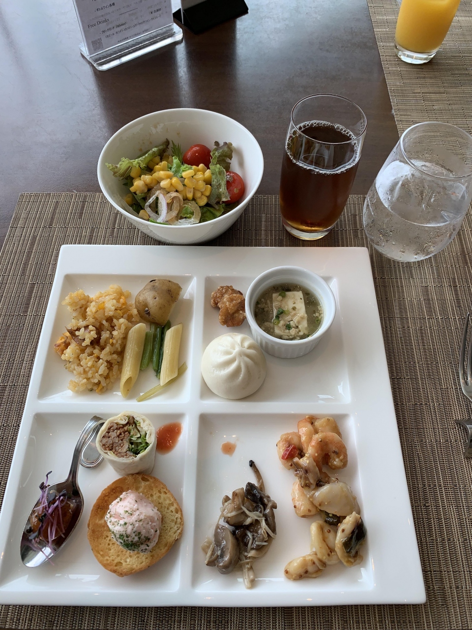 ピザとパスタのランチコースを一つずつ頂きました。どちらも美味しかったです。バイキングでいただく前菜、ドリンクも美味しくて満足しました。平日ランチは、2時間制でした。- 旅行時期