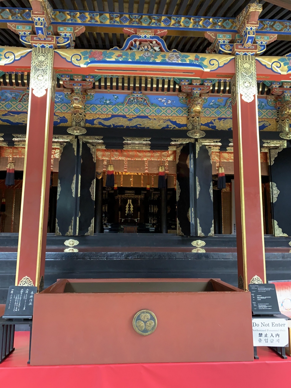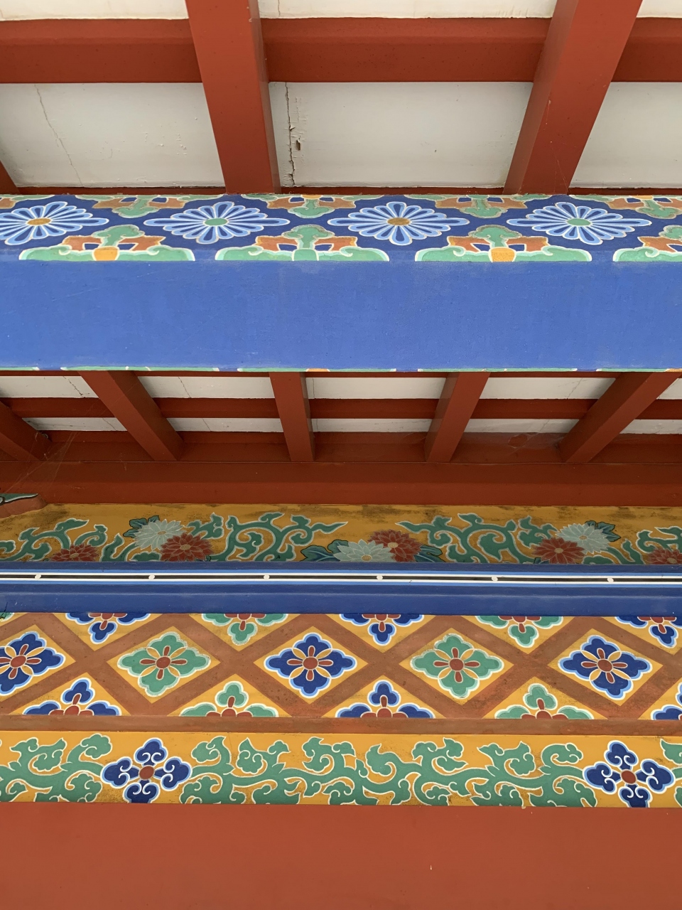拝殿は、きらびやかで美しい造りでした。細かいところまで、綺麗な色使いでした。