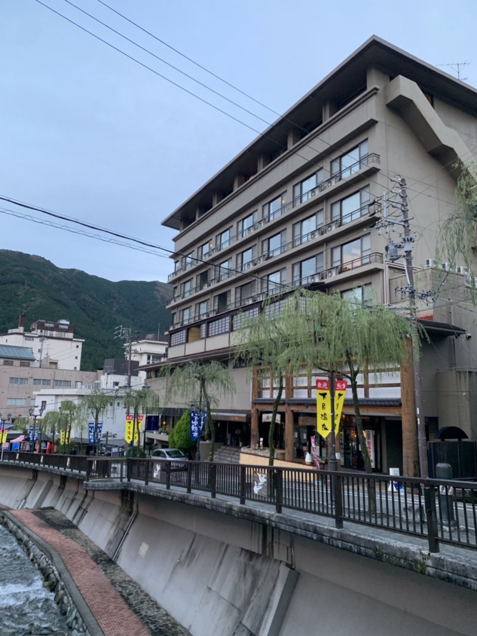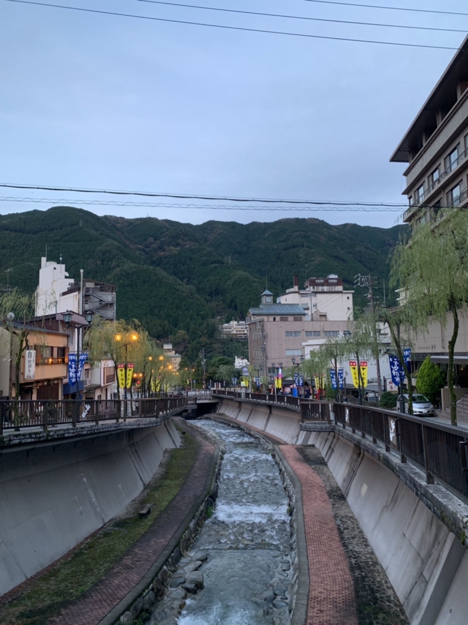 下呂温泉の温泉街にあります。川沿いにあるので、散歩にはちょうどいい感じです。