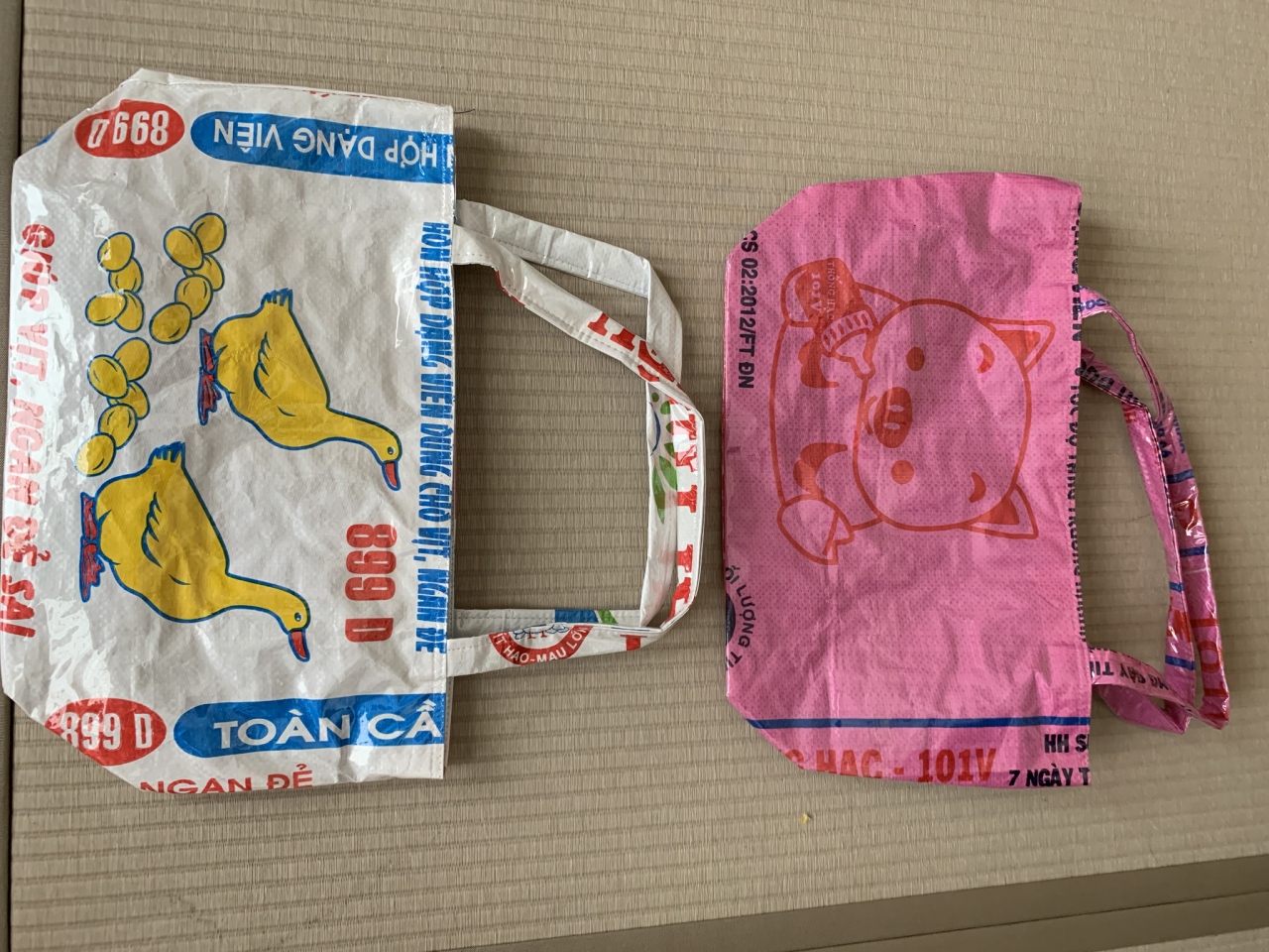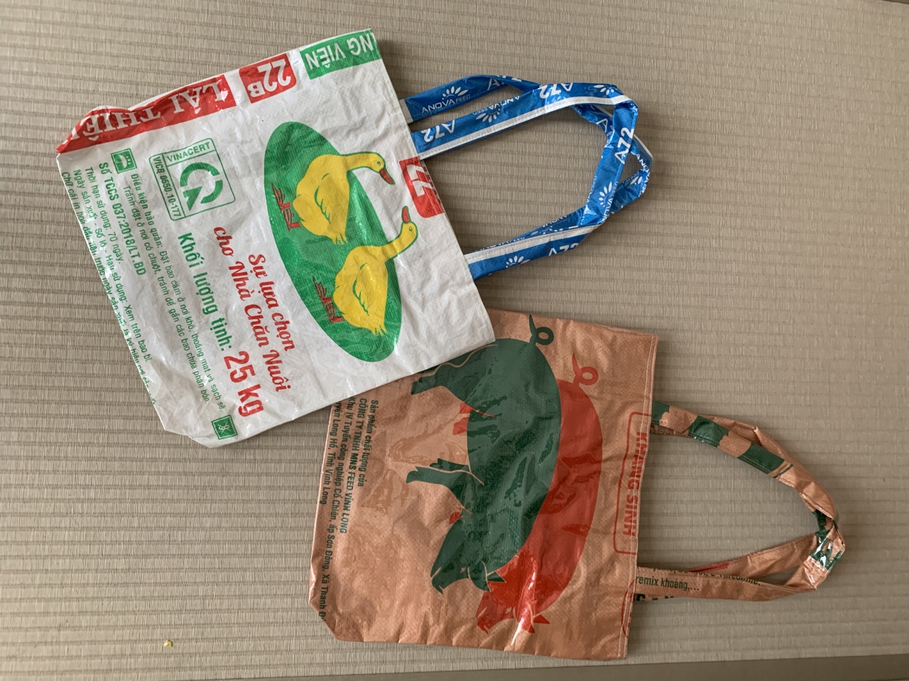 案内されたお店にも、カバンがたくさんありました。資材袋で作られたカバンをいくつか購入しました。まとめて購入すると、少し割引きしてくれました!