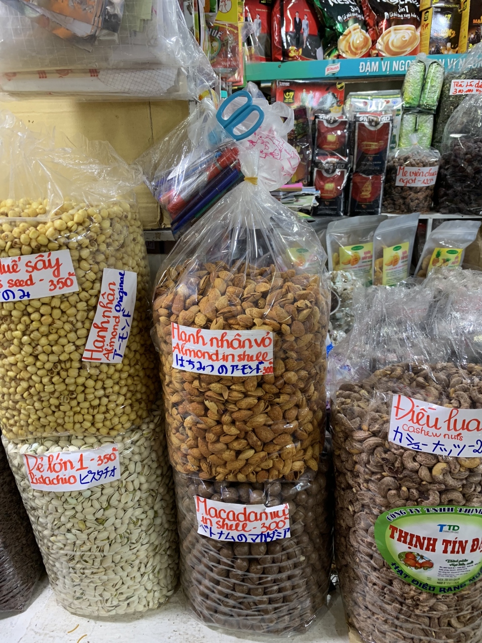 この市場へ行く目的は、アモイという名前のナッツ屋さんです。試食しながら、順番待ちしました。昨夏より少し値上がりしていましたが、それでも日本で買うよりは安いです!