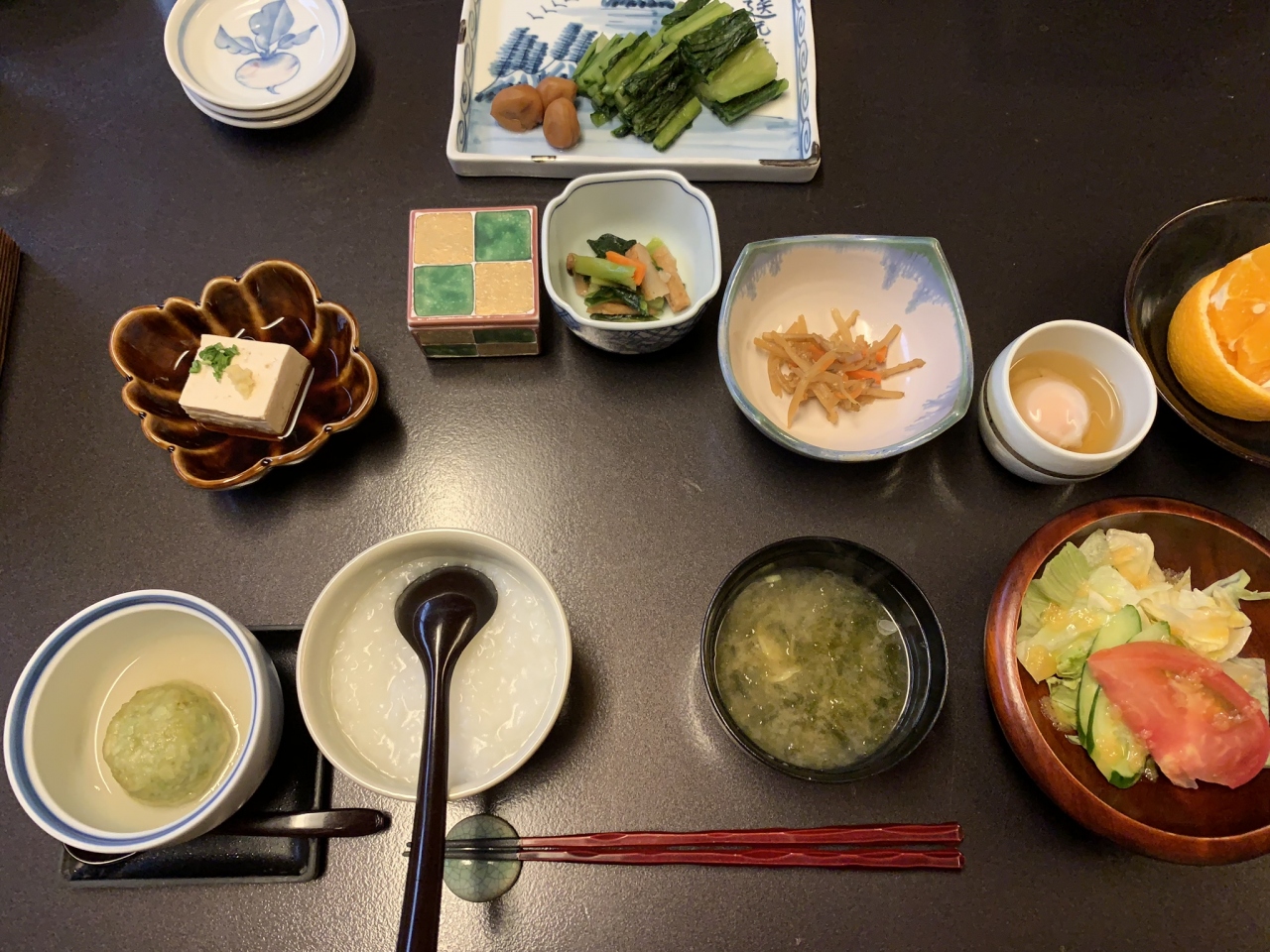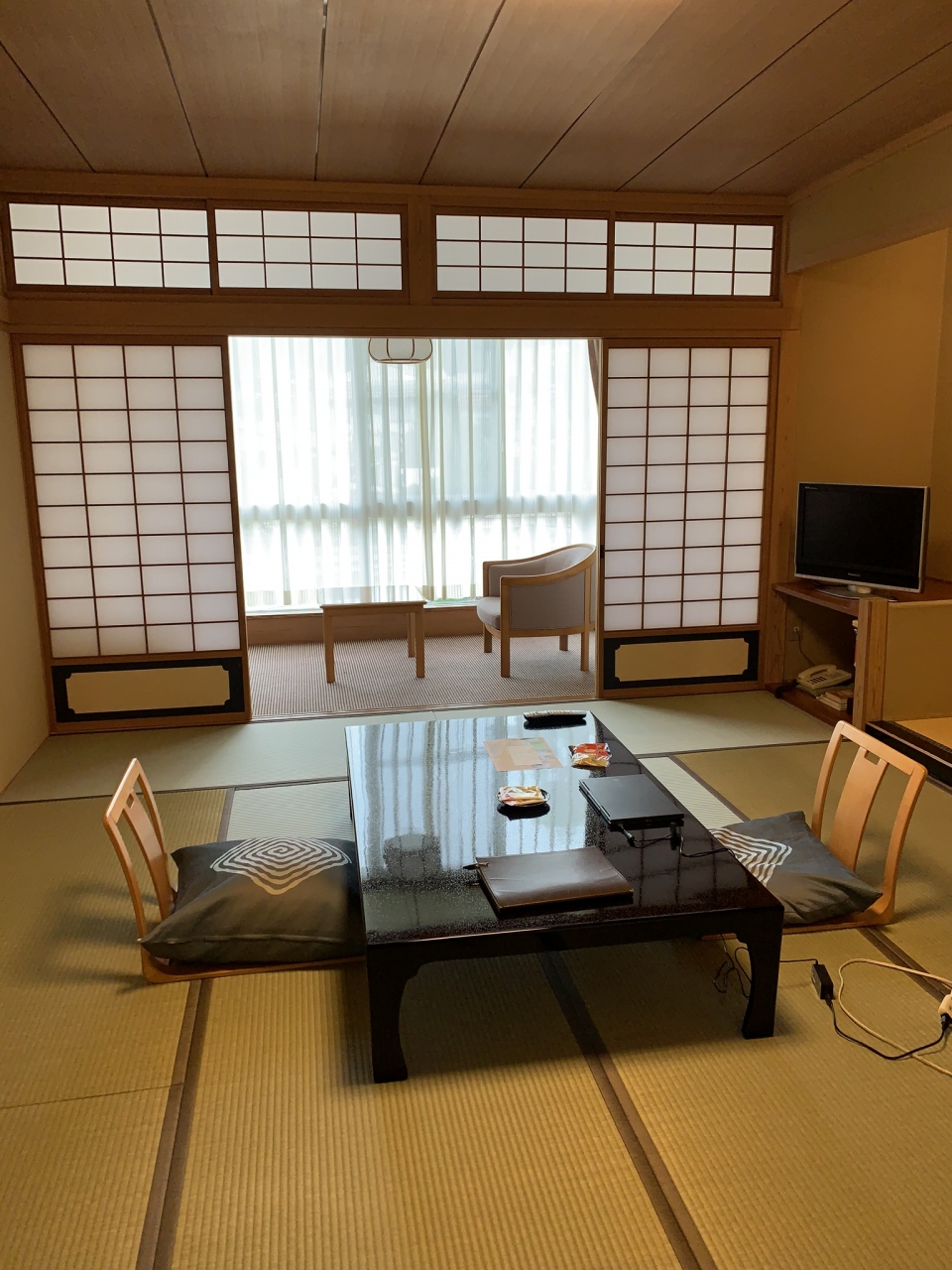 温泉街に佇む趣のある旅館でした。お部屋はゆったりとしていて、清潔感がありました。お風呂も、評判どおり風情のある造りでした。夕食、朝食も、地元の素材で丁寧に作られていて美味しかったです。ただ、案内された食事をする部屋が廊下より暑くてびっくり!とてもこの部屋では食事できない!と訴えました。いったん部屋に戻り待ち、その後、ちゃんとエアコンのある部屋で食事できました。対応して頂けて良かったです。