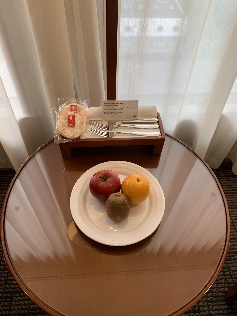 フロントにお願いすると、ウエルカムフルーツを食べられるようにして、部屋に届けてくれました。