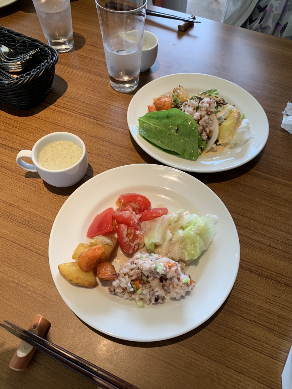 ランチをいただきましたが、野菜類、パン、ドリンクが食べ放題でお得感がありました。どれも美味しかったのですが、特にパンが美味しくて、階下のお店で買って帰りました。
