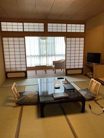 タイトルの通り、夏休み真っ只中に宿泊しました。ロビーもフロントも大混雑。予想していましたが、本当に賑やかでした。夕食は、バイキング。種類も多く、食べ応えありました。ただ、ゲストが多いせいで、テーブルとテーブルの間隔が近くて、通路も狭く、お料理を持っての移動に気を遣いました。部屋は、ミニキッチンが付いていて、二人で過ごすには広かったです。