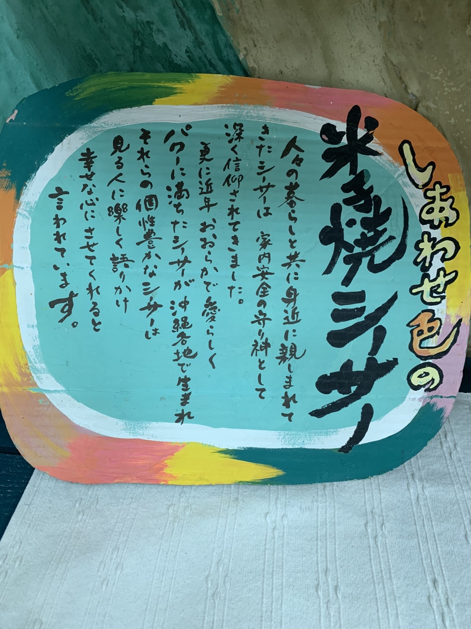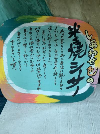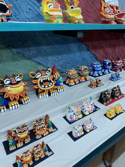 川平湾に行く途中に見つけて寄ってみました。店内には、たくさんのシーサーが並んでいました。作家さんが自由に名前をつけていいそうで、ひとつひとつに名前がありました。夫とあれこれ相談して、お土産にひと組購入しました。支払いには、クレジットカードが使えました。