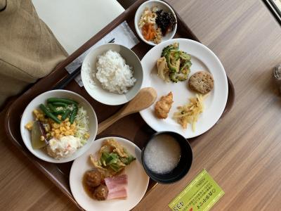 野菜もたくさん取れそうで、美味しそうなハンバーグのセットを注文しました。小鉢やライスもついていて、お得感のあるランチでした。出る頃には混み合っていて、待つ方もいました。