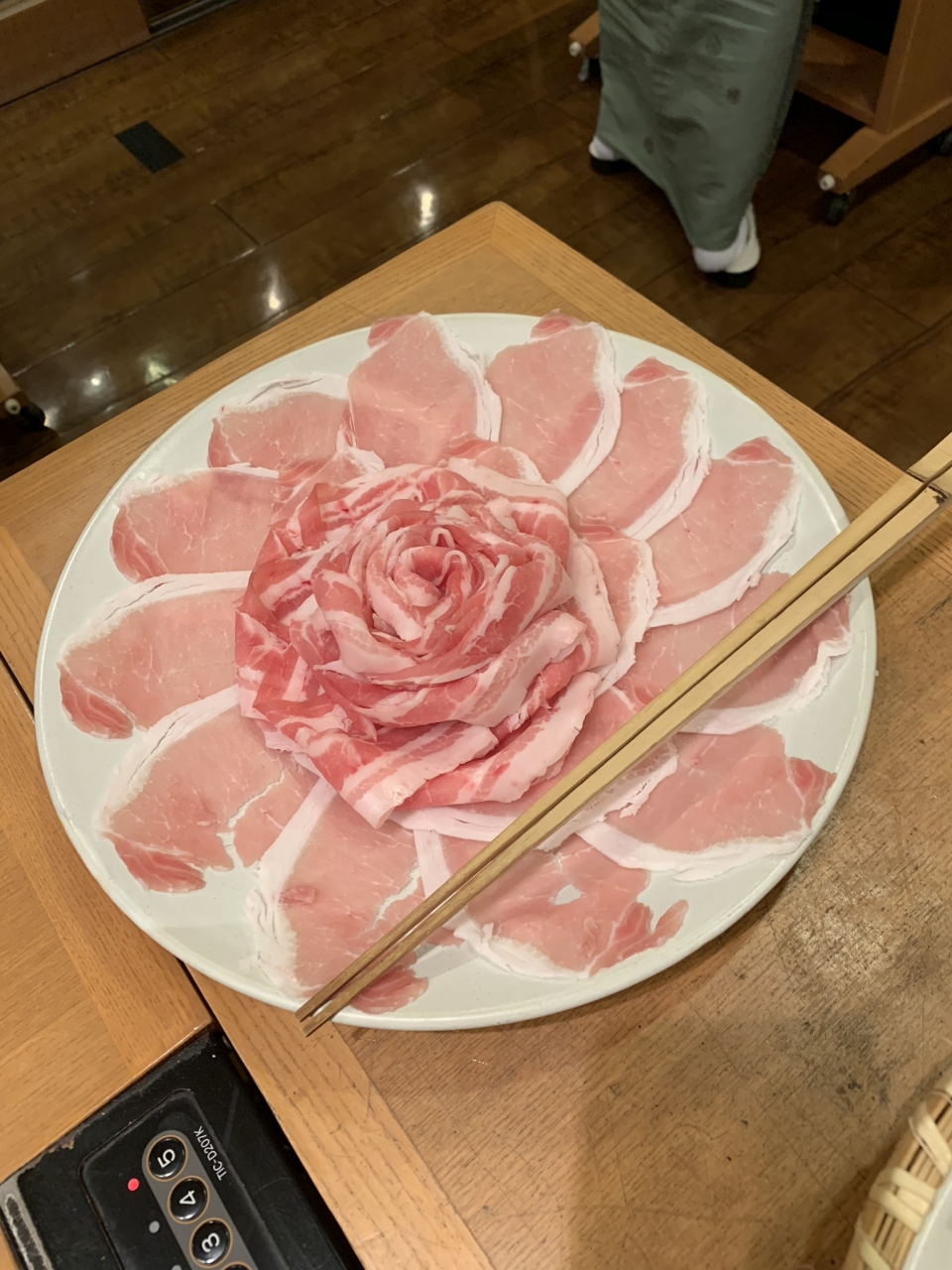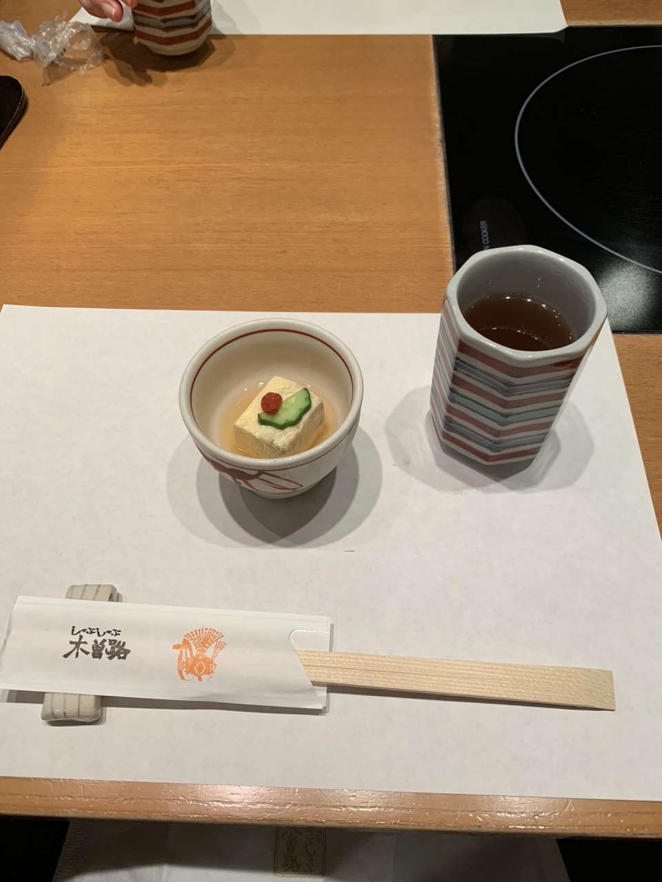 予約無しで行ったら入れなかったことがありました。なので、今度はちゃんと予約して出かけました。3人だったので、テーブル席に案内されました。豚しゃぶしゃぶのコースを頂きました。最初は、お店の方がいろいろやって下さいました。スープがさっぱりしていて、美味しかったです。