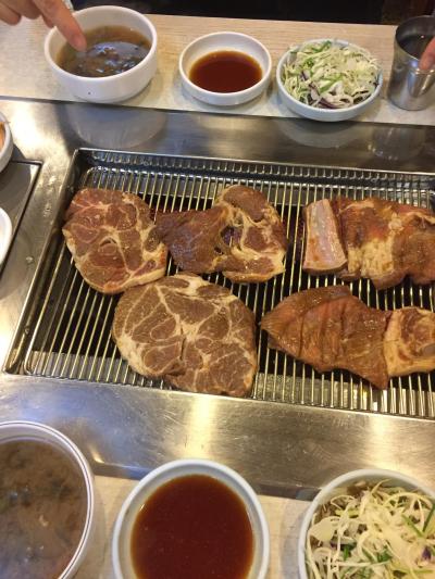 ティーマークホテルに宿泊しました。お店は、ホテルの真ん前にありました。デジカルビを2人前頂きました。お肉も十分で、おかずもたくさん出てきて、一人前が12000ウォンでした。柔らかくて美味しいお肉でした。お店のお兄さんは、愛想が良いわけではありませんが、焼いてくれて、食べていいよ!と教えてくれました。