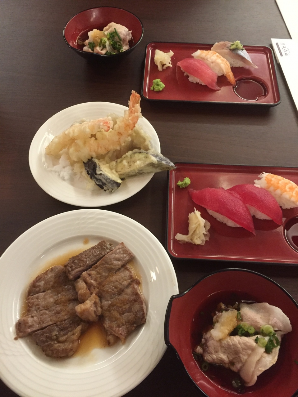 夕食朝食ともに、ブッフェスタイルでした。品数も多く美味しく頂きました。夕食のステーキ、お寿司、天ぷら、パスタ、しゃぶしゃぶなどは、目の前で作って頂けるのが嬉しいサービスです。時間によっては、並びます。- 旅行時期