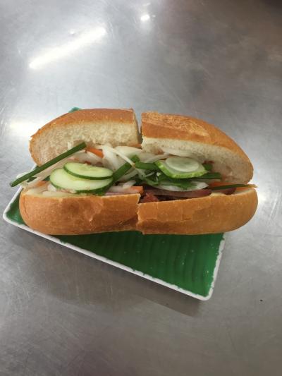 ホーチミンに来たならバインミーを食べなきゃ!と言うことで、有名店のこちらに来てみました。お店の中に入って空いた席に座ると、スタッフの方が気づいてくれました。