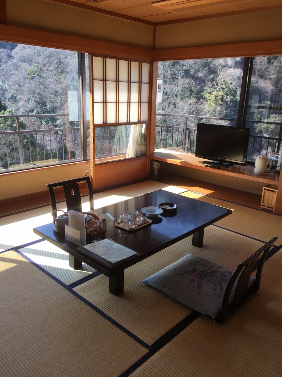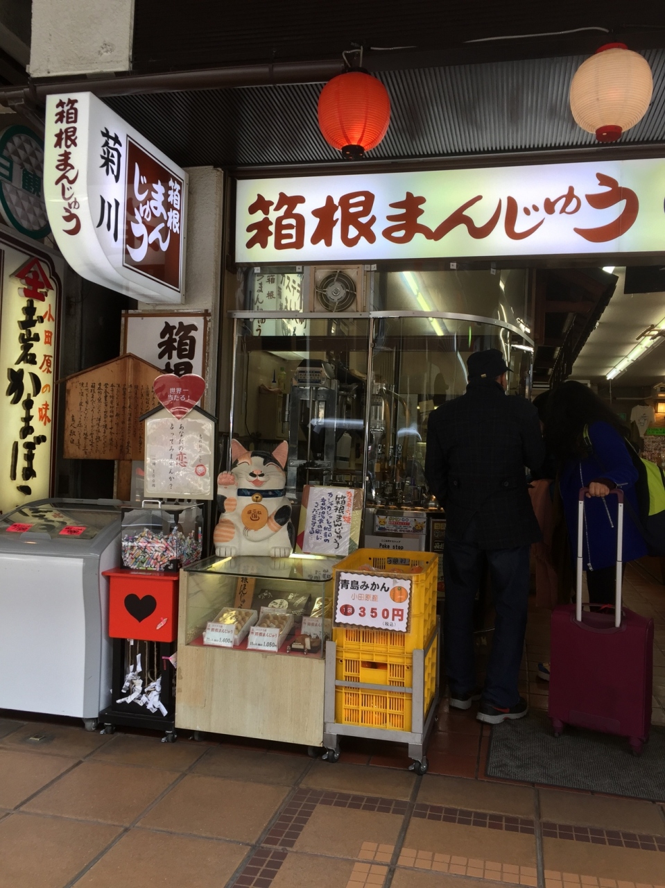 箱根湯本駅を降りて、駅のある側の反対側にあります。反対側には、歩道橋で渡ることができます。箱根湯本エリアにある旅館やホテルを巡回してくれるバスに乗るために、案内所で教えて頂きました。ルートがいくつかありました。運賃はなんと100円でした。