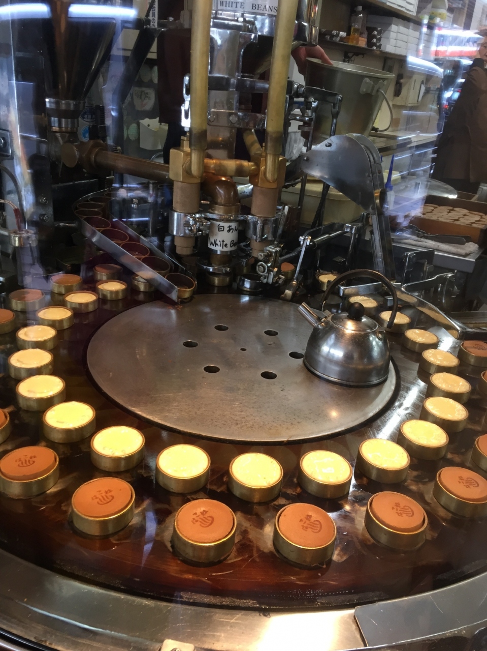 土曜日の夕方16時ごろ行きました。お店の中は、大勢の大陸の方でごった返していました。試食が頂けるテーブルもいっぱいでした。商品を買いたいお客さんもレジカウンターあたりに列を作っていたくらいでした。私は1人だったので、すぐに案内してもらえました。丸々ひとつの試食とお茶を頂いてホッと一息でした。フリーWi-Fiもあるので、次の予定を検索したりして、10個入りを買って帰りました。クレジットカードも使えます。