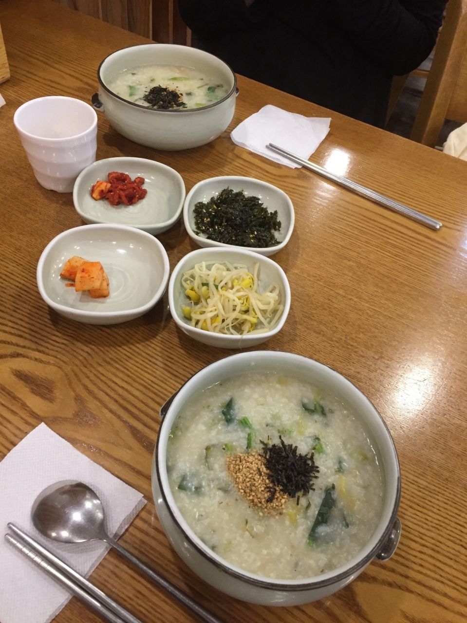 再び訪れました!朝ごはんにぴったりなお粥とマンドゥです。マンドゥは、1つ頼んで友人とシェアしました。野菜粥は、野菜がたくさん入っていて優しいお味で美味しいです。クーポンを持参すると割引して頂けます。朝ごはん時は、入れ替わり立ち替わりお客さんが入って来ていました。