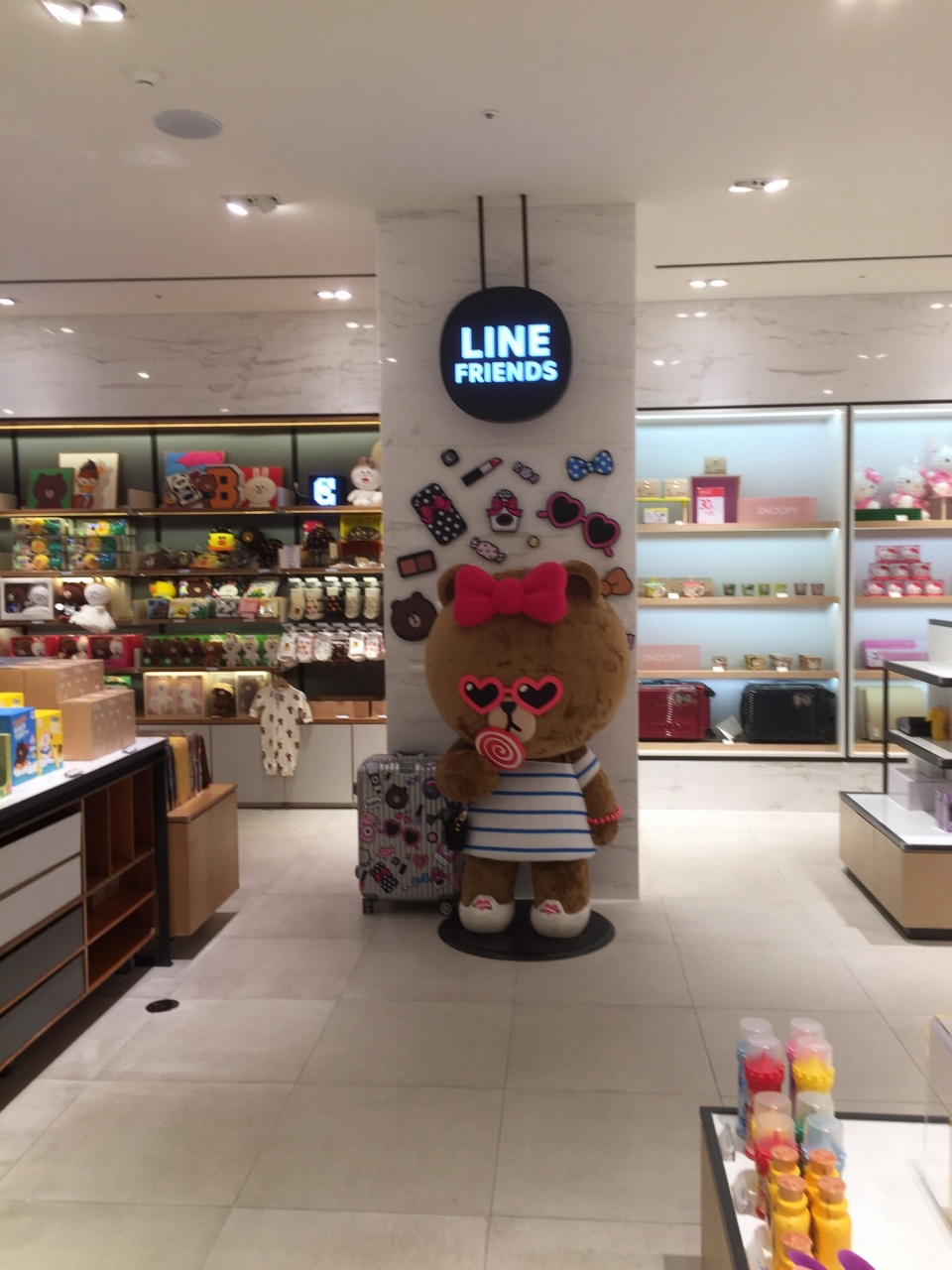 ラインのキャラクターグッズのお店に行ってきました。明洞の街中にあるお店より、規模は小さいですが混んでいません。バラマキ土産にもなるし、可愛いのでステッカーを買いました。10ドル以上の買い物で、Wi-Fiのルーターレンタル料金が3日間無料というキャンペーンをやっていたので、サービスカウンターで手続きしました。入店サービスもあって、シートマスクと携帯魔法瓶も頂きました。