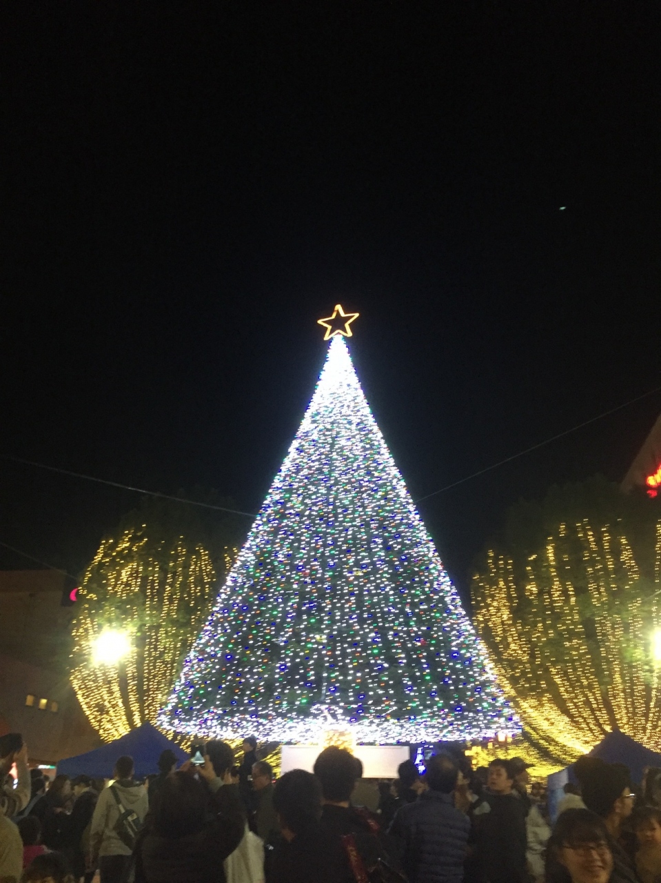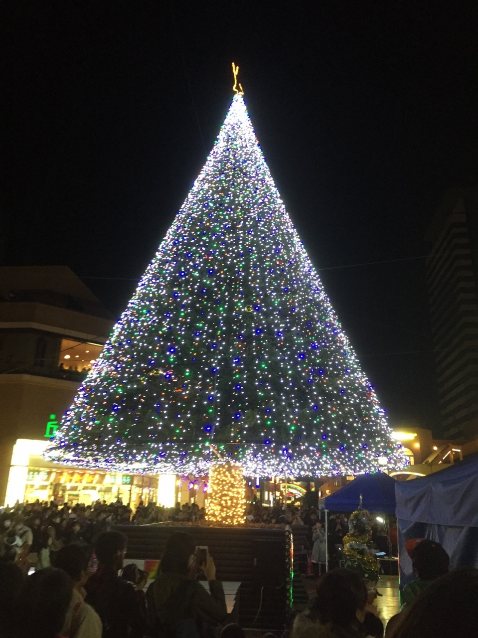 11月12日夕方6時ごろ、点灯しました!キティちゃんと集まった人達によるカウントダウンが行われました!今年の点灯式は、寒くなくてラッキーでした。これから、お正月明けまで、しばらくの間、美しいクリスマスイルミネーションが楽しめます!