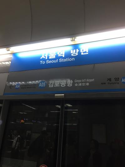 金浦空港から乗りました!空港からは、地下に降りて案内に従って数分歩きます。地下鉄5号線で行くより、ずっと速く中心地まで移動可能です。平日の日中だったせいか、それほど混み合っていませんでしたが、スーツケースがじゃまにならないように、端っこに立ちました。