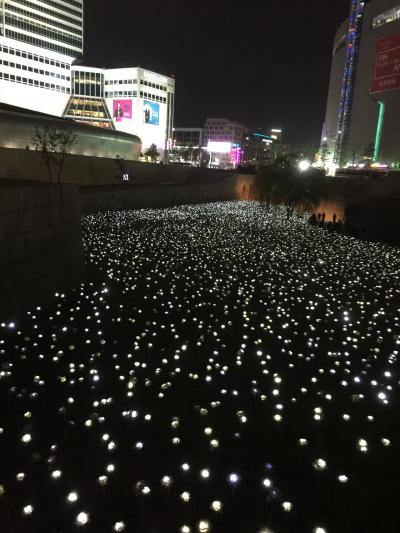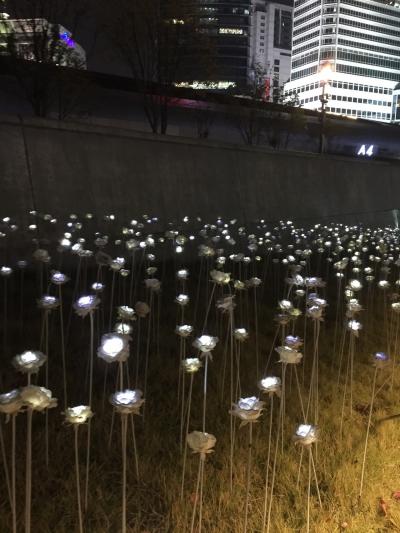 東大門市場で買い物をする時に行ってみました。LEDでできたバラの花畑。いろいろな方のブログで見ていましたが、やっと自分の目で見ることができました。素敵な花畑でした。まわりも人が多くて、写真を写している人が多かったです。