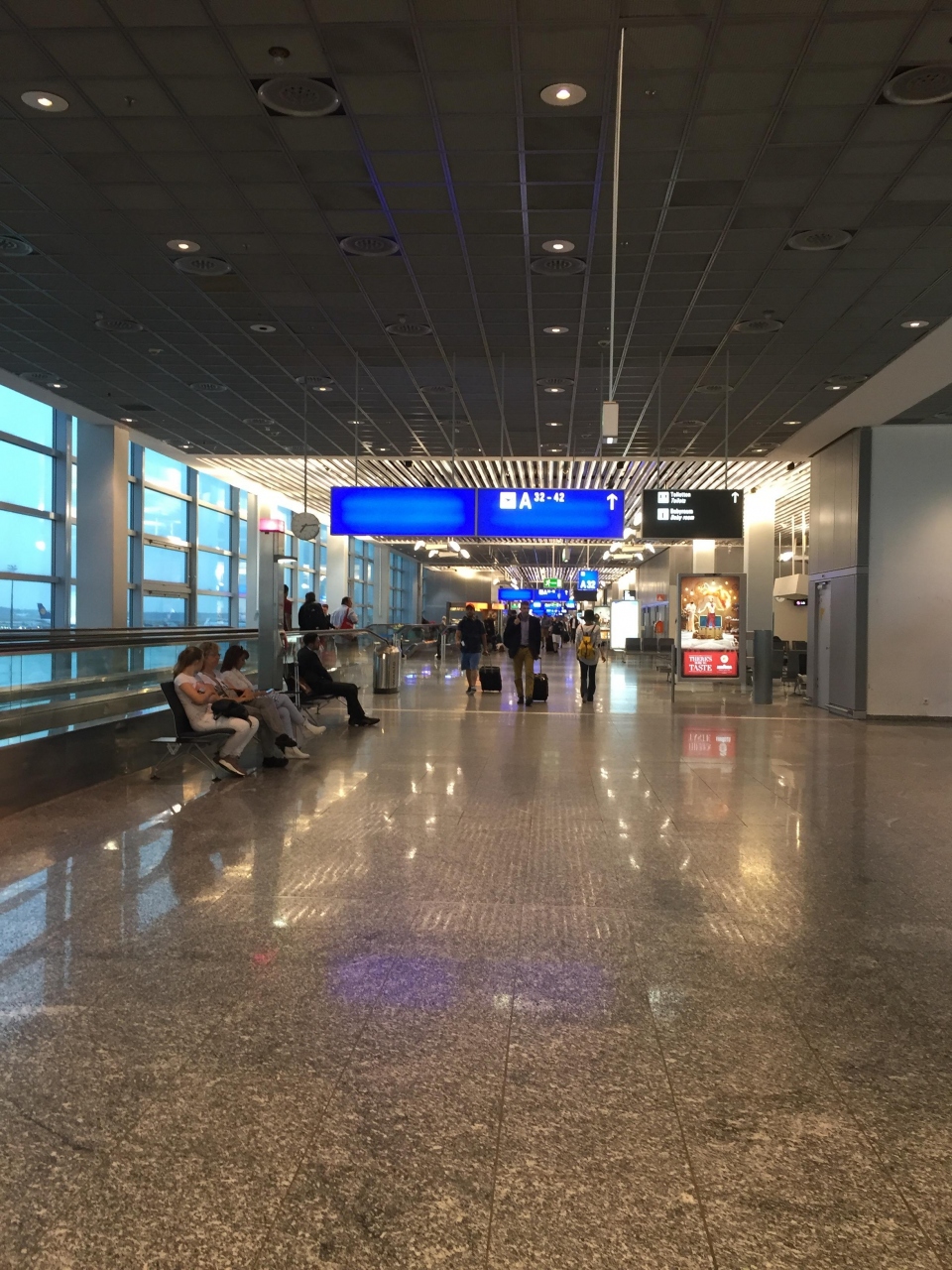 トランジットで利用しました。ターミナルBからターミナルAへの移動がありちょっと不安もありましたが、表示が所々にあり、それに従って進めば大丈夫でした。乗り継ぎで、入国審査とセキュリティーチェックもありました。目的地、観光か仕事か、何日滞在?など質問されました。案内デスクもあって、ゲートの変更がないか尋ねると丁寧に教えて下さいました。通路が広くて、清潔で明るい雰囲気の空港でした。