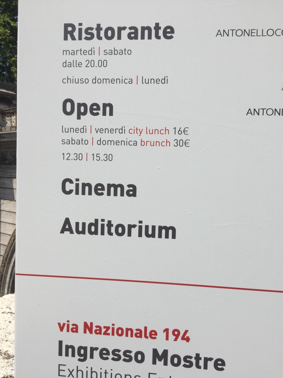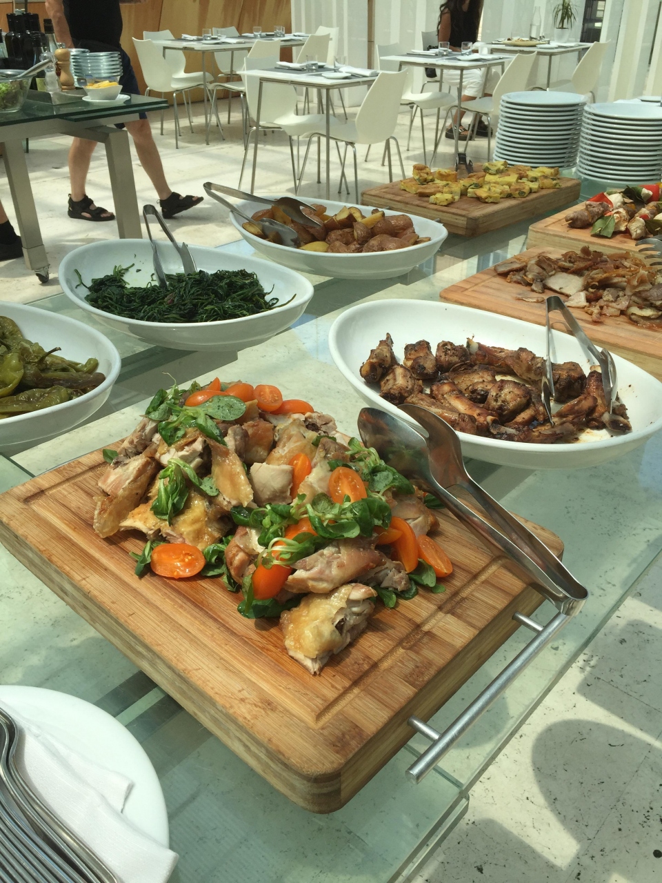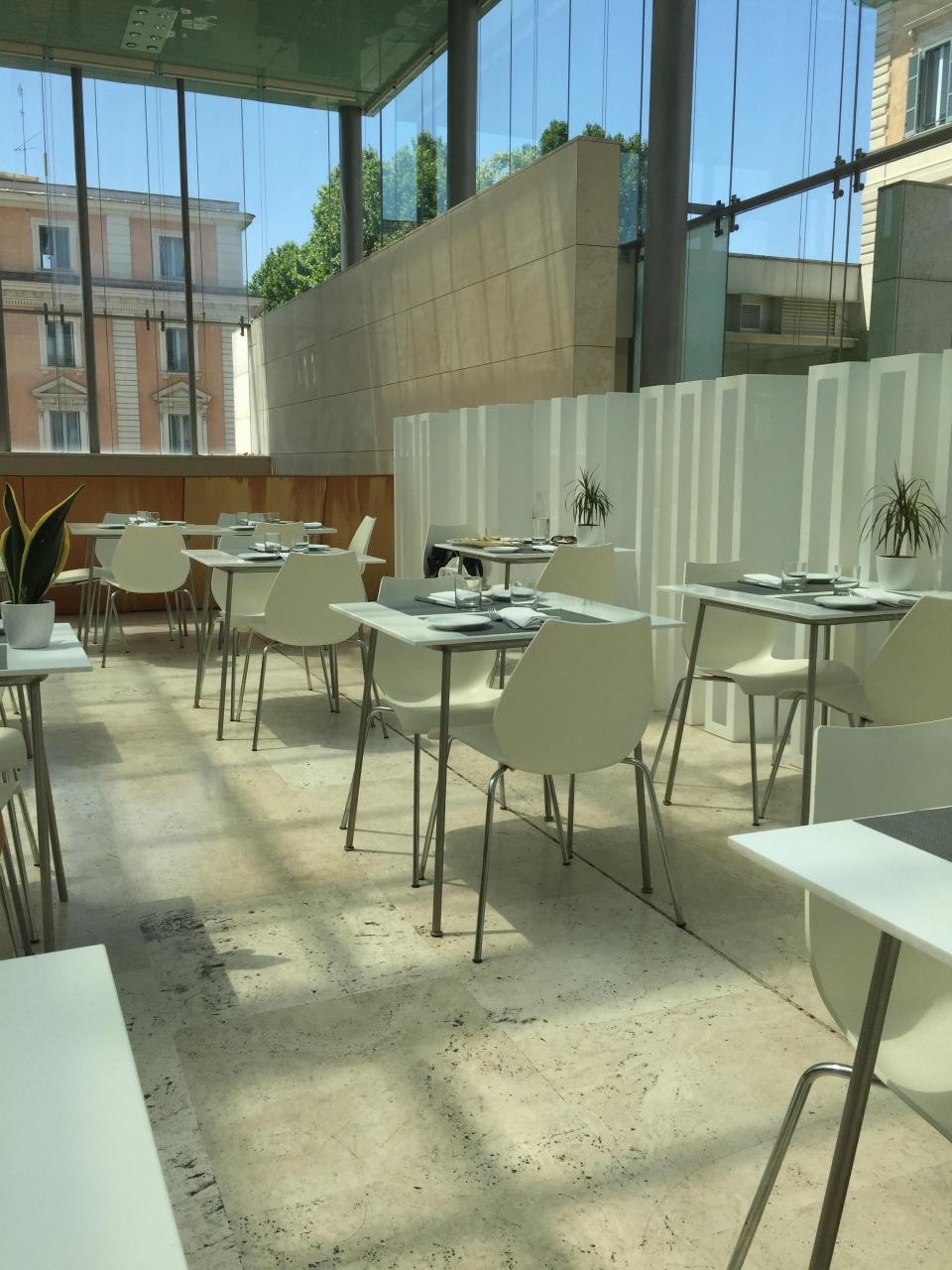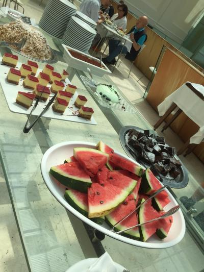 エスポジツィオーネ美術館にあるレストランです。美術館には入らず、レストランのみ利用できます。ミシュラン一つ星だそうです。平日ランチは、ひとり16ユーロでブッフェです。野菜、パスタ、お肉、フルーツ、ケーキなど種類も多く、全種類は食べられません。ガラス張り?になっていて、とても明るい雰囲気です。観光客が来ると言うよりは、ローカルの方がお友達とランチに来るとか、ビジネスマンのランチと言う感じでした。この雰囲気でこのお値段はお得だと思います!