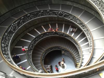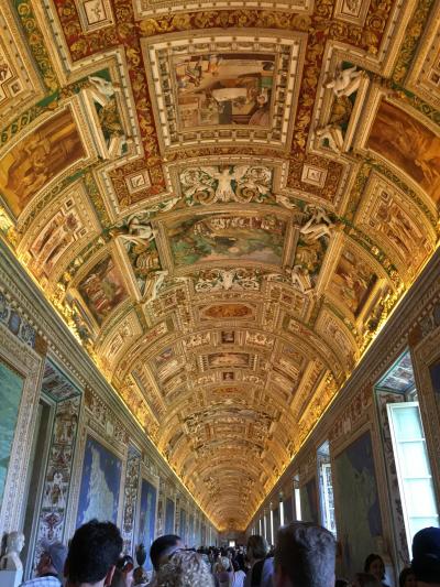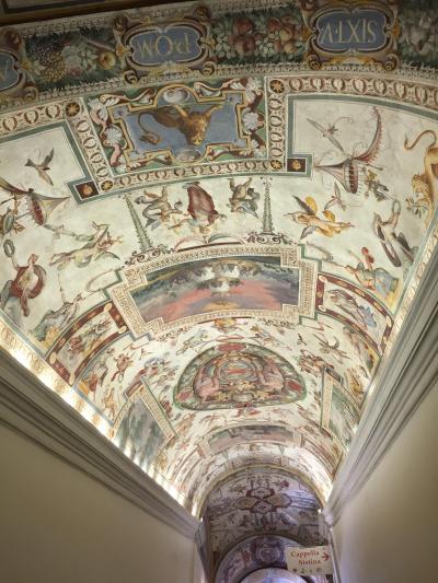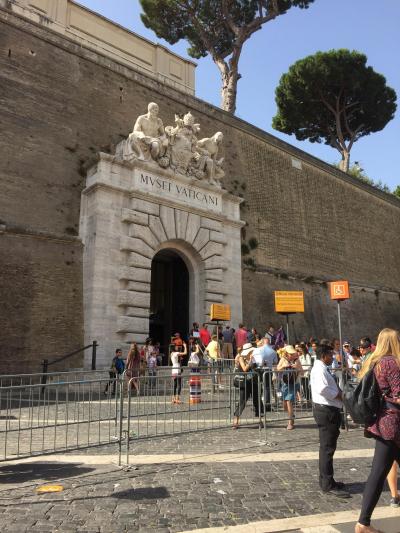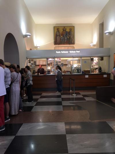 2か月前にローマ旅行を決めて、まずはヴァティカン美術館のネット予約をしました。予約して正解!当日9時45分に着いたのですが、すでに長蛇の列ができていました。予めプリントした用紙をスタッフに見せると、この列を歩いて と案内されました。まずは、予約の紙をチケットブースでちゃんしたチケットに交換して、次にネット予約した音声ガイドの貸し出しカウンターへ。日本語のセットをしてもらって、さあ、見学スタート!すでに、周りはすごい人混みでした。音声ガイドは、ひとつひとつの作品をめちゃめちゃ丁寧に説明してくれます。さすがにぜ~んぶは聞いていられませんでした。イヤホン型ではなかったのもちょっと扱いづらかったです。約3時間あまり、素晴らしい作品を堪能しました!天井の作品も多く見上げていたので、首も疲れました。特にシスティーナ礼拝堂は本当に素晴らしかったです。運よく座って鑑賞できたので、休憩タイムになりました。ものすごい大勢の人だったので、なかなか静かにならず、何度もシ~ッと声がかかりました。出口近くの売店で絵葉書を買い、郵便局があるのでその場で書いて出しました。約2週間後、自宅にエアメイルが届きました!