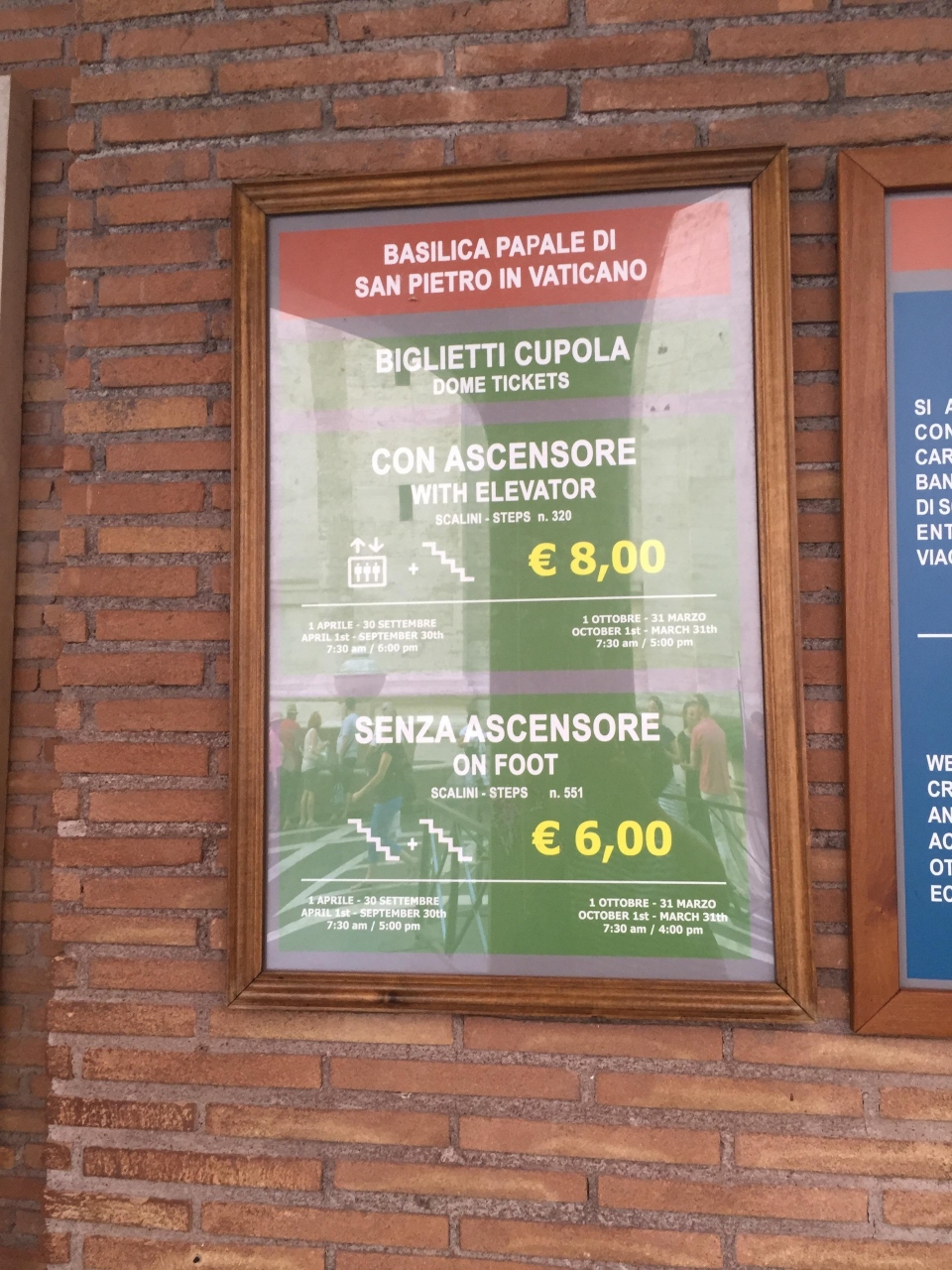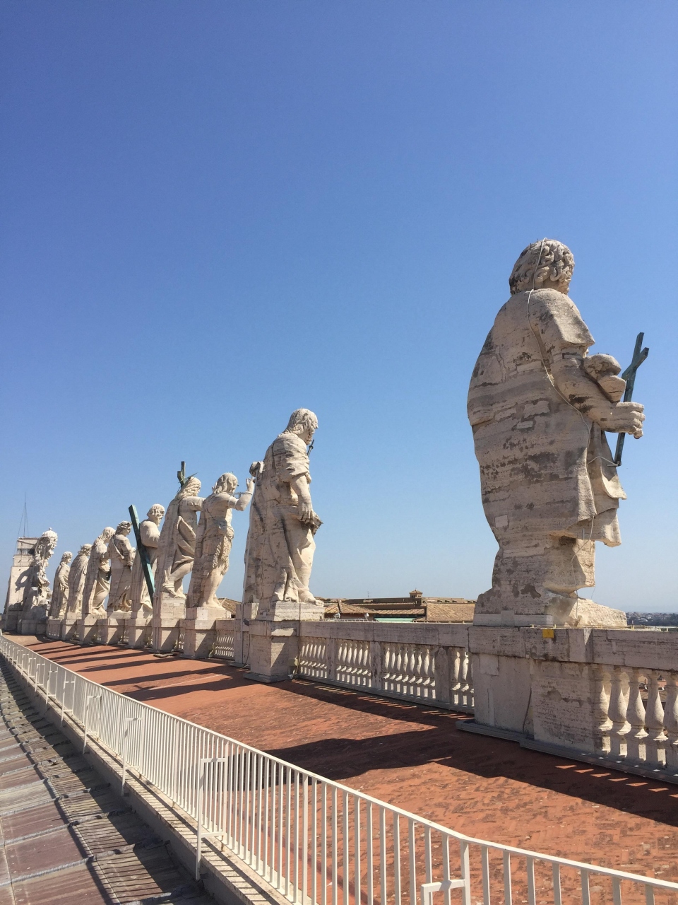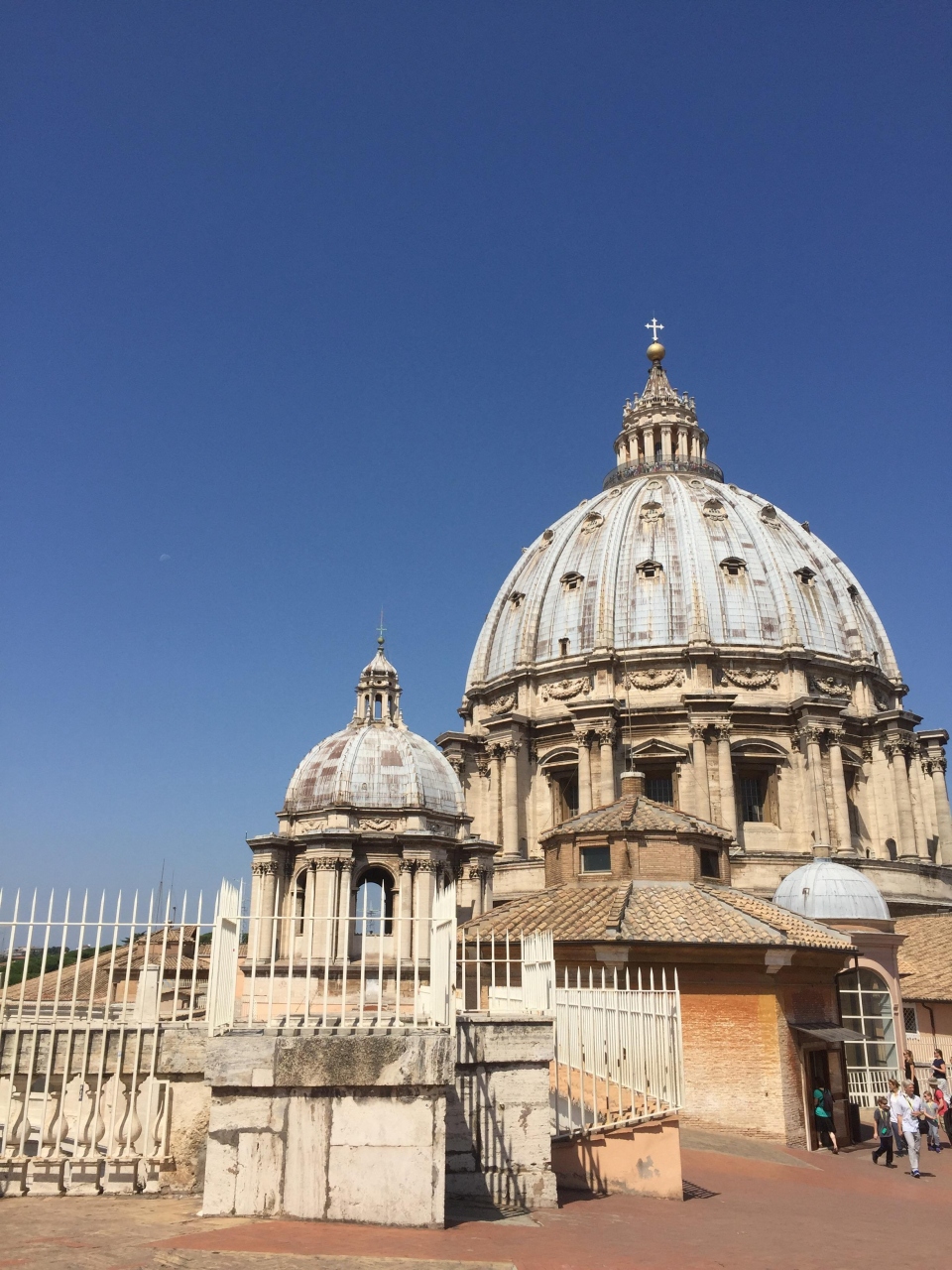 朝の9時40分くらいに着きましたが、10分くらいセキュリティーチェックに並んだだけで入ることができました。中は、多くの観光客がいましたが、ごった返していると言うほどではなく、そこそこゆっくり見ることができました。世界最大のカトリック聖堂と言われていすまが、どこを見ても豪華絢爛。バルダッキーノ、ピエタなど素晴らしい彫刻でした。
