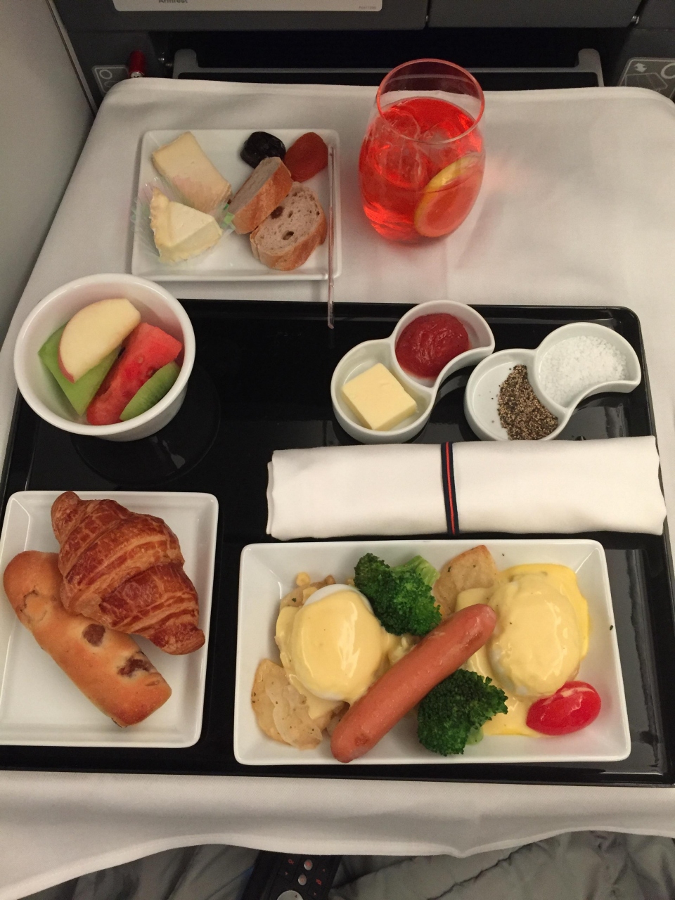 ローマ個人旅行のため、羽田空港からフランクフルト空港までANAを利用しました。羽田空港を深夜発現地に同日朝に到着するので、時間的には得した感じです。ウエルカムドリンクの後は寝てしまうので、フルコースのディナーというわけではないですが、お腹が空いた時にはメニューから軽い食事をオーダーすることができました。初めてのビジネスクラスだったので、ワクワクして乗りましたが、CAさんも丁寧な接客で気持ちよく過ごせました。フルフラットのシートで睡眠もとれました!お金貯めて、ぜひまた乗りたいです!
