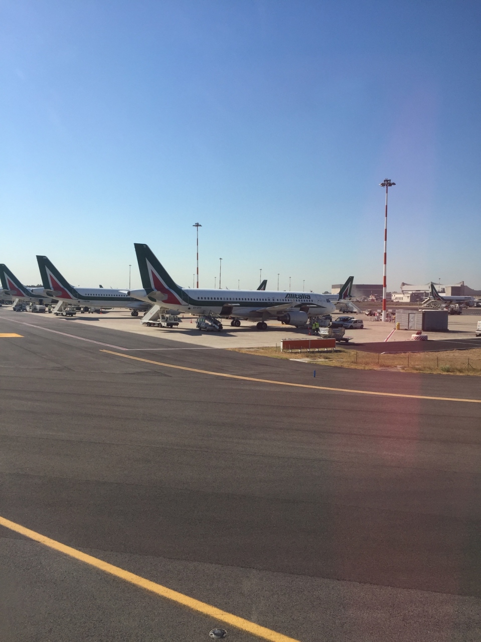 ビジネスクラスと言っても、3席の真ん中の席を使用不可にしてある座席でした。フランクフルトからローマまでの2時間あまりの短距離なので、ここの路線だけならエコノミーで十分でした。