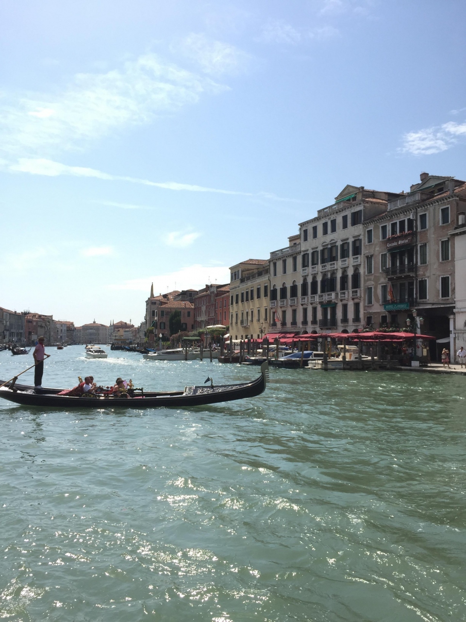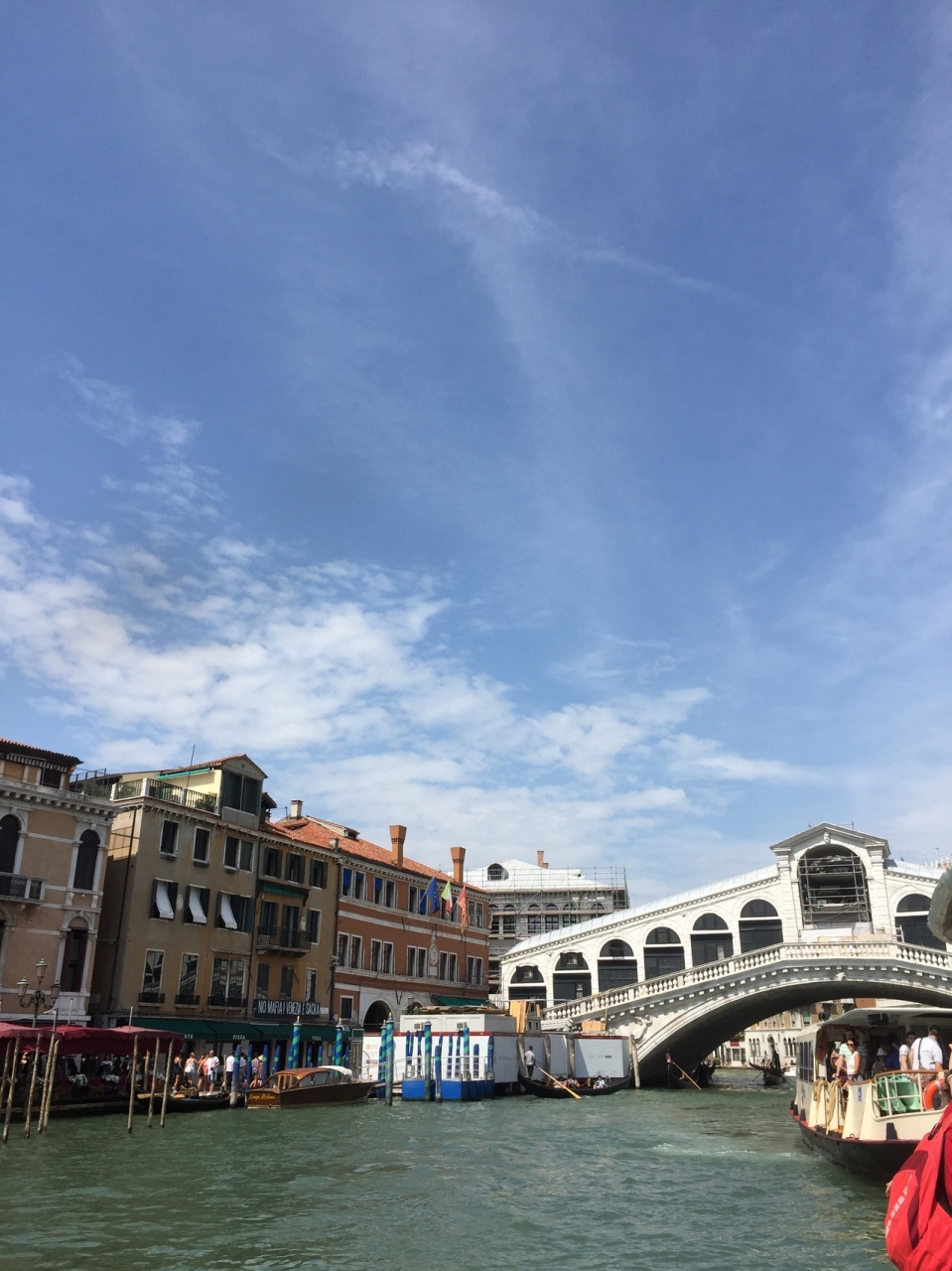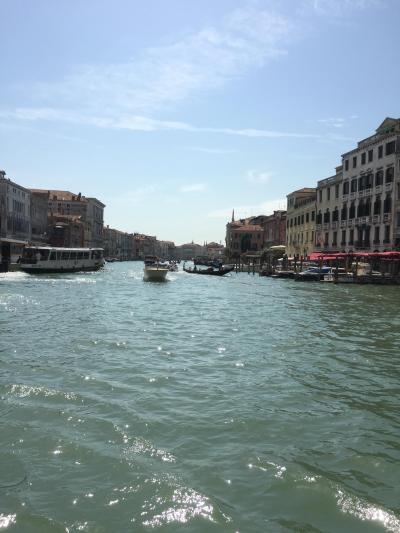 サンタルチア駅からリアルト橋までの往復、ヴァポレットに乗りました。大勢の観光客が乗るので、なかなか前方エリアに行けませんでしたが、それでも気持ち良い風に吹かれて、カナルグランデ大運河を楽しむことができました。水上タクシーやゴンドラも行き交い、活気が感じられました。滞在が短かったので駅とリアルト橋往復しか乗りませんでしたが、時間があったら、サンマルコ広場まで乗りたかったです。