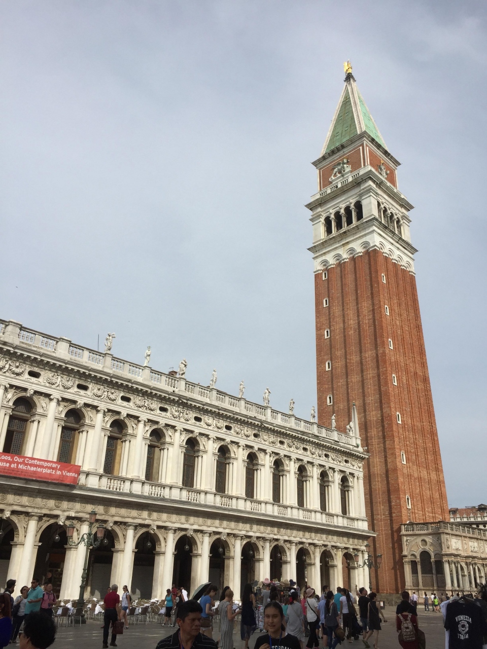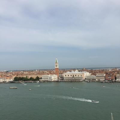 サンマルコ広場の乗り場から船で1区間乗って行ってみました。対岸から見るヴェネチアの街、素敵でした。エレベーターで鐘楼に登りましたが、混んでいないのでゆっくり眺めを楽しむことができました。風が吹いていたので本当に気持ちよくて、ここまで来て良かったなと思いました。