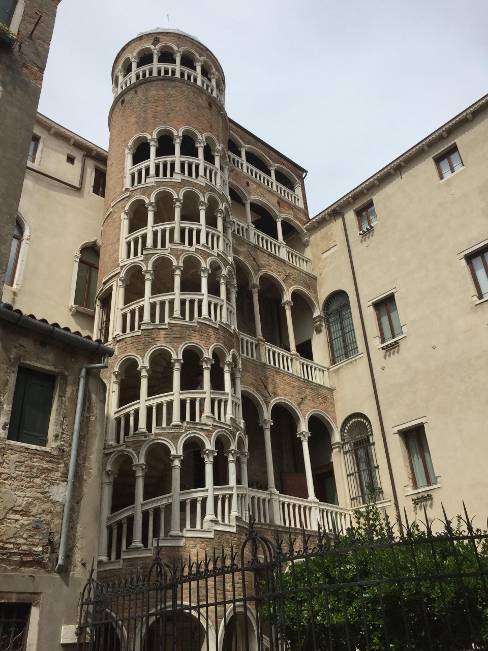 ホテルから近かったので行ってみました。ヴェネチアの路地は分かりにくいですが、地図を見ても???くるくる歩いてたどり着きました。階段を登ることができるようでしたが、時間も無かったのて、階段の外観だけ楽しませて頂きました。