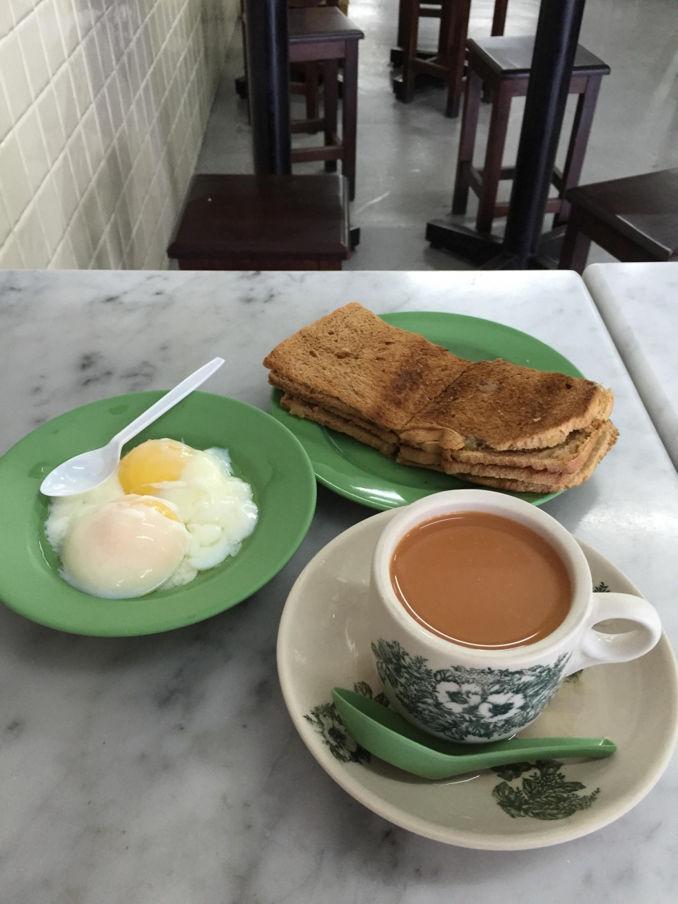 カヤトーストと飲み物のセットで4.8ドルでした。お店のおじさんが、食べ方を教えてくれました!
