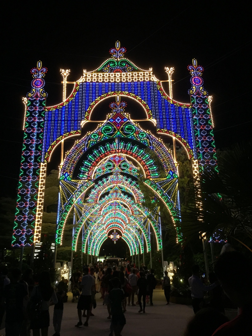 夜に行なわれるイルミネーションを見に行きました。クリスマスまで3週間という時期だったので、イルミネーションもクリスマスバージョンでした。いろいろな色に輝く大きなツリー。クリスマスソングが流れて、ワクワクした気分になりました!上ばかり見て写真や動画を撮っていたら、ライトにつまづいて転んでしまいました。皆さんも気をつけて下さいね!