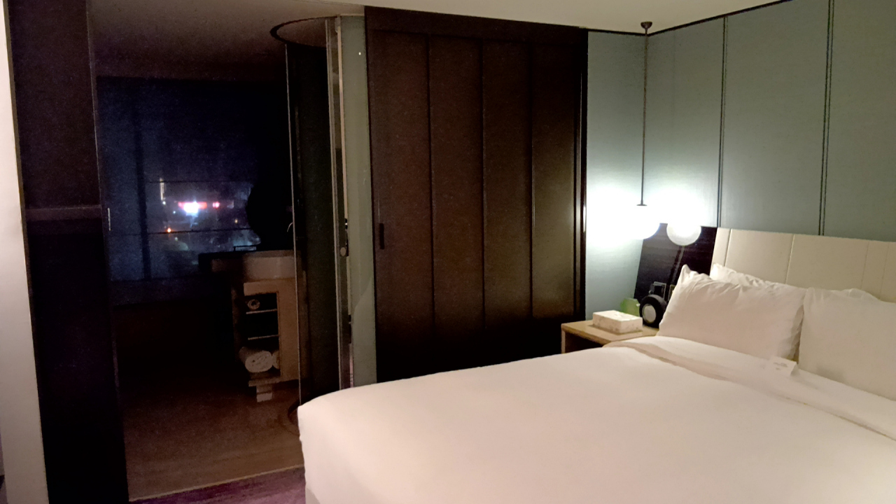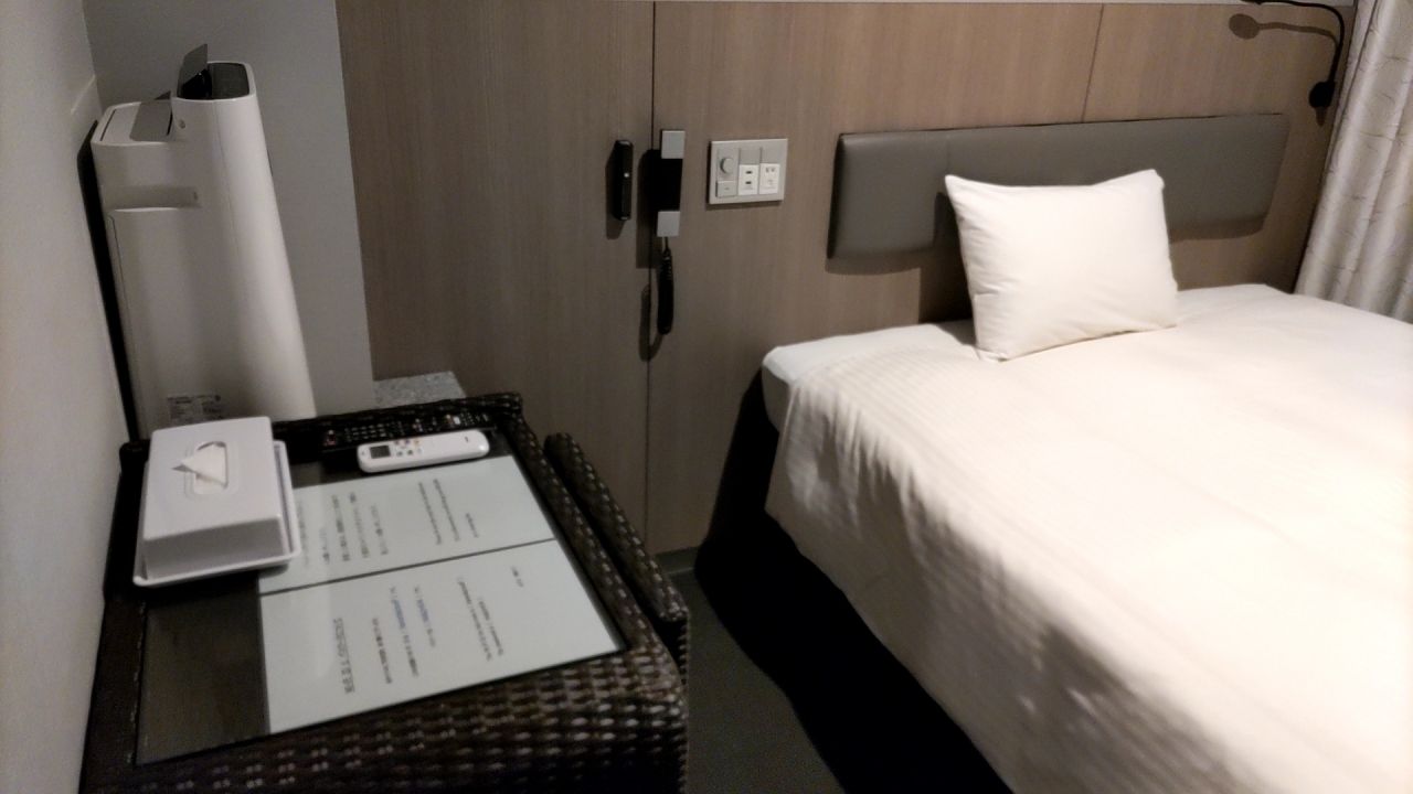 泊まったスタンダードシングルルームにはバゲージラックが無く、床に置くのは嫌だったのでキャリーバッグは大きなビニール袋を敷いてベッドの上で広げた。