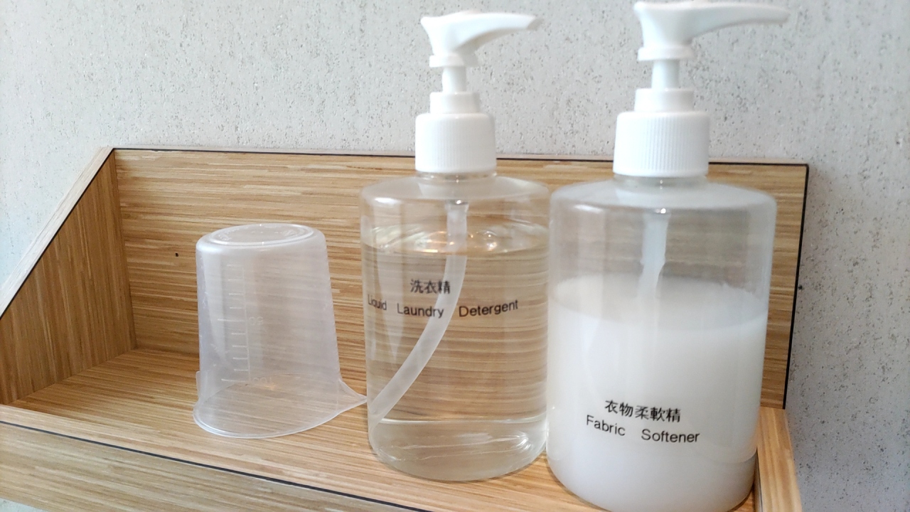 部屋にドラム式洗濯乾燥機が有り洗剤&柔軟剤も置いてありました。