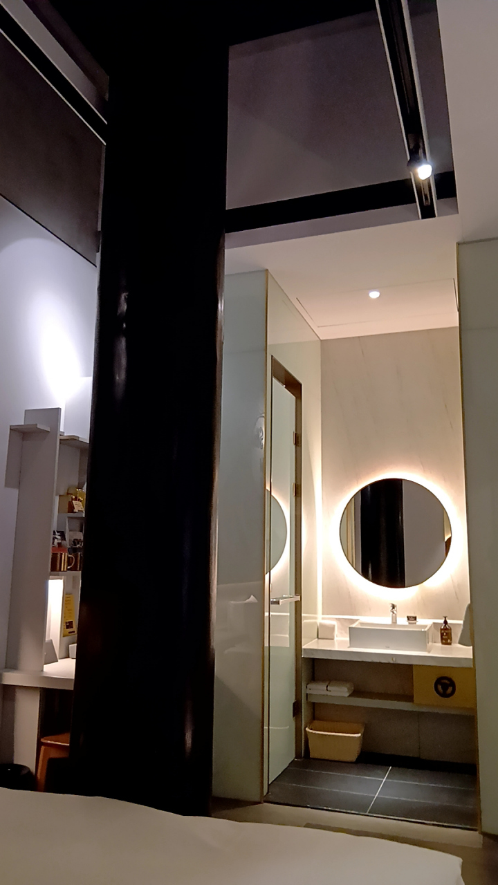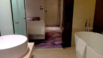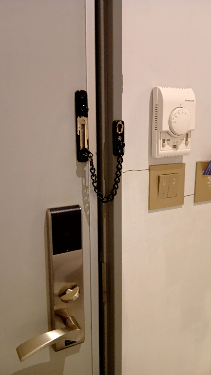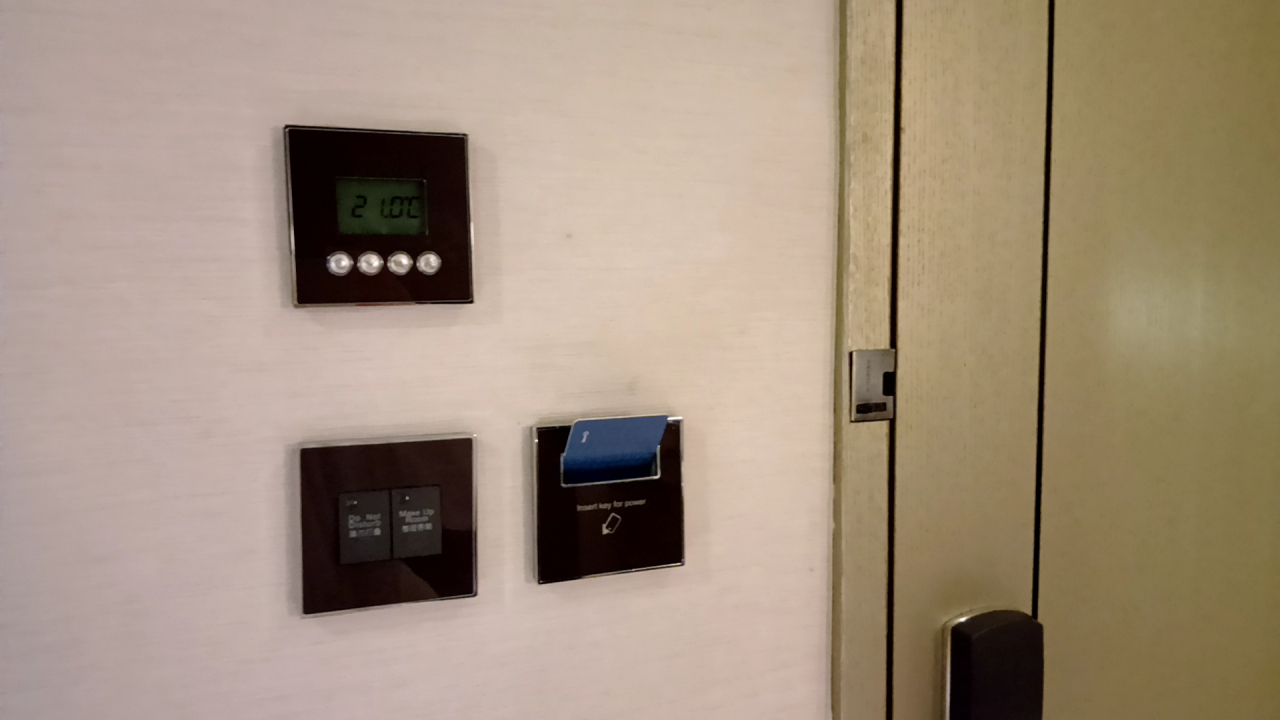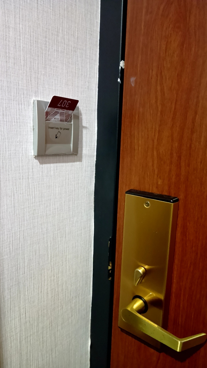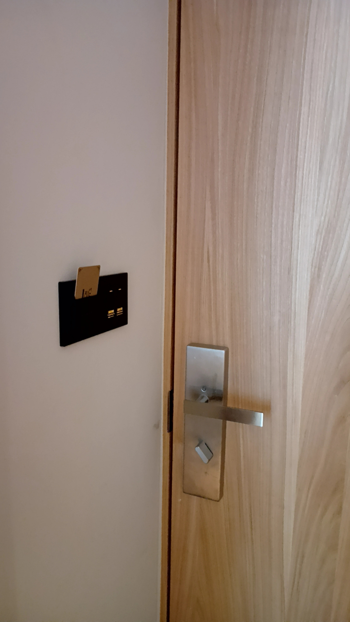 部屋は最下層階の7階で、レストランと同フロア。案内プレート通りに向かったら行き止まりで壁しか無くて「えっ?」となりましたが、それはセキュリティ付きの大きな扉で、ルームキーを翳したら奥に行くことが出来ました。