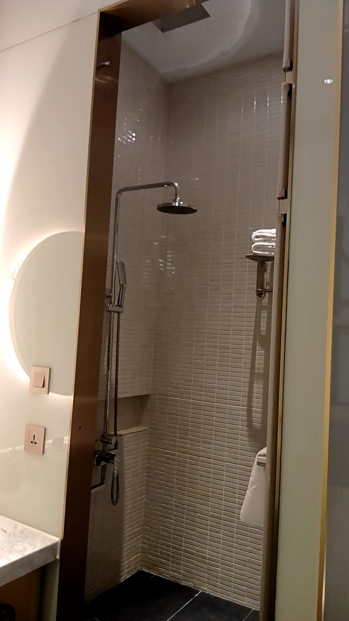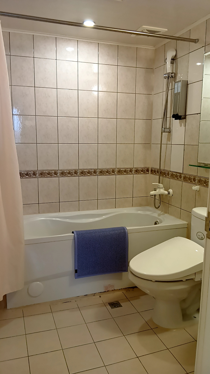 バスタブは有りません。そして残念なことにドアガードが無かった。まあ、コンパクトな部屋なので構造的に無理だったのだろうと思う。